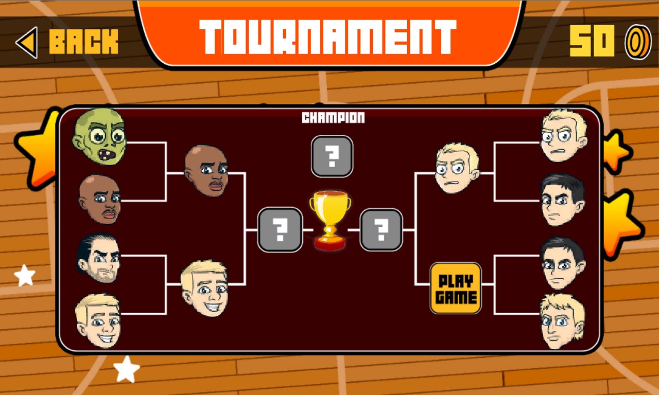 Shoot, block, shove and dunk your way through tournaments to unlock more characters. Try your luck on the prize wheel to earn attribute boosts, power cards and more unique characters to play as.