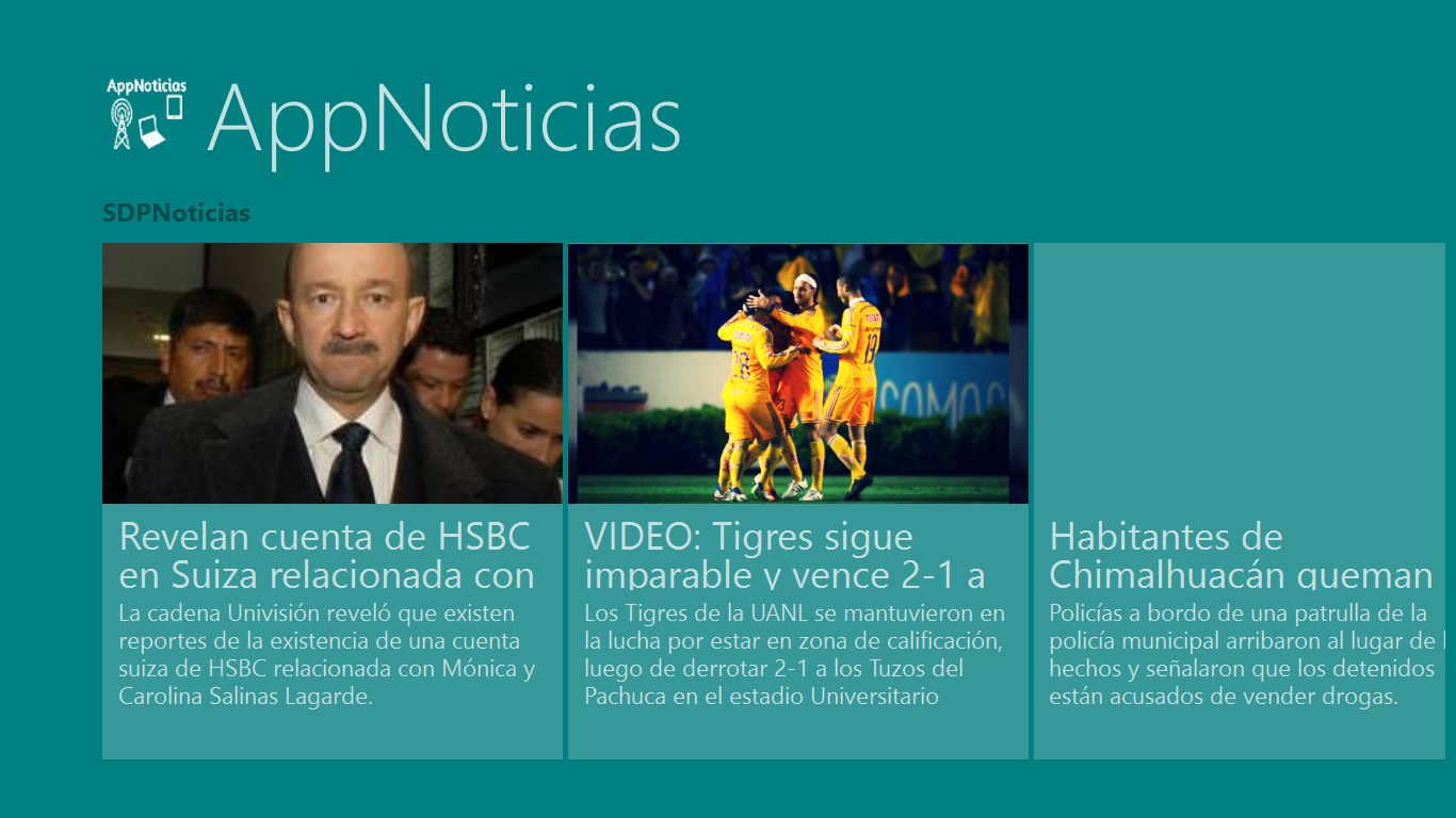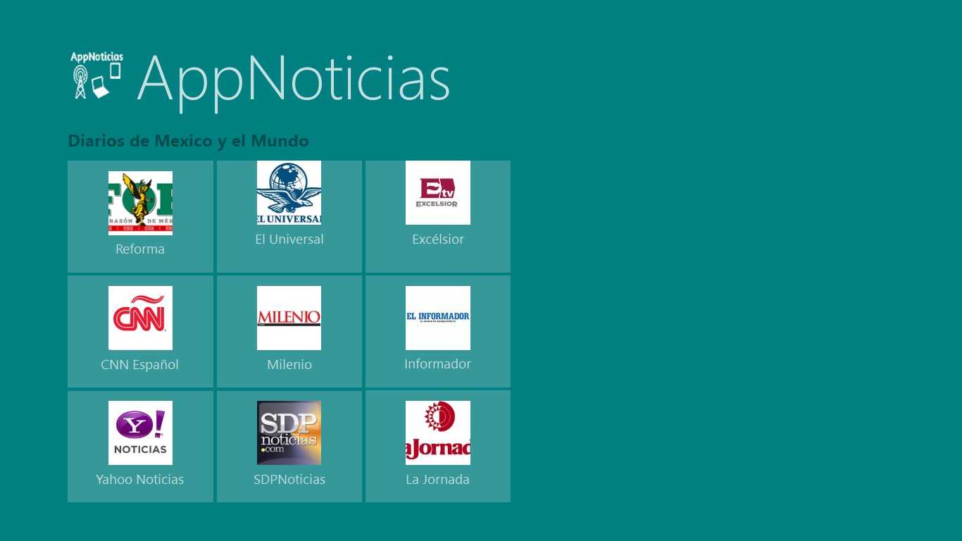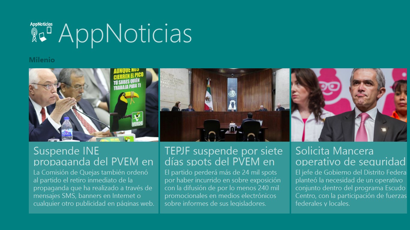 AppNoticia para computadoras con Windowns 8.1 el cual contiene de diarios y blogs dedicados a informar de noticias y novedades de lo que sucede en todo el Mundo. Esta aplicacion es una recopilacion de los diarios y blogs mas detacados en cuanto a informar los nuevos acomtecimientos.