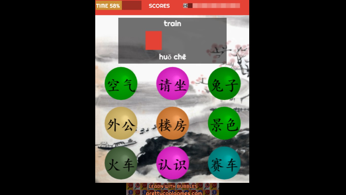The action game format sharpens your focus, you don't have to sit down and memorize things but you learn naturally while playing. In addition to the game play, CHINA BUBBLES supports your learning by analyzing your results and offering customized levels tailored just for you.