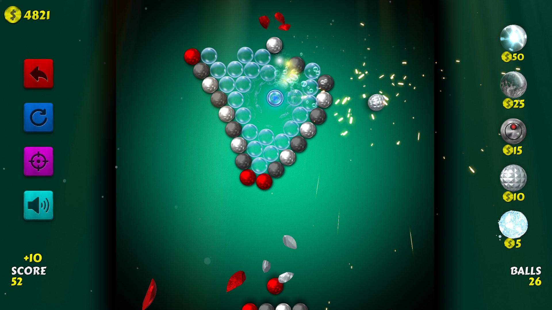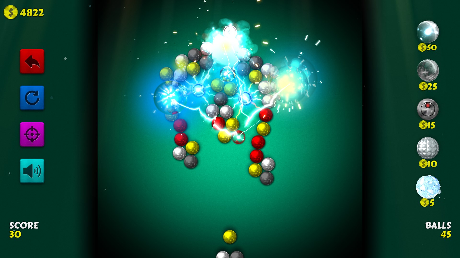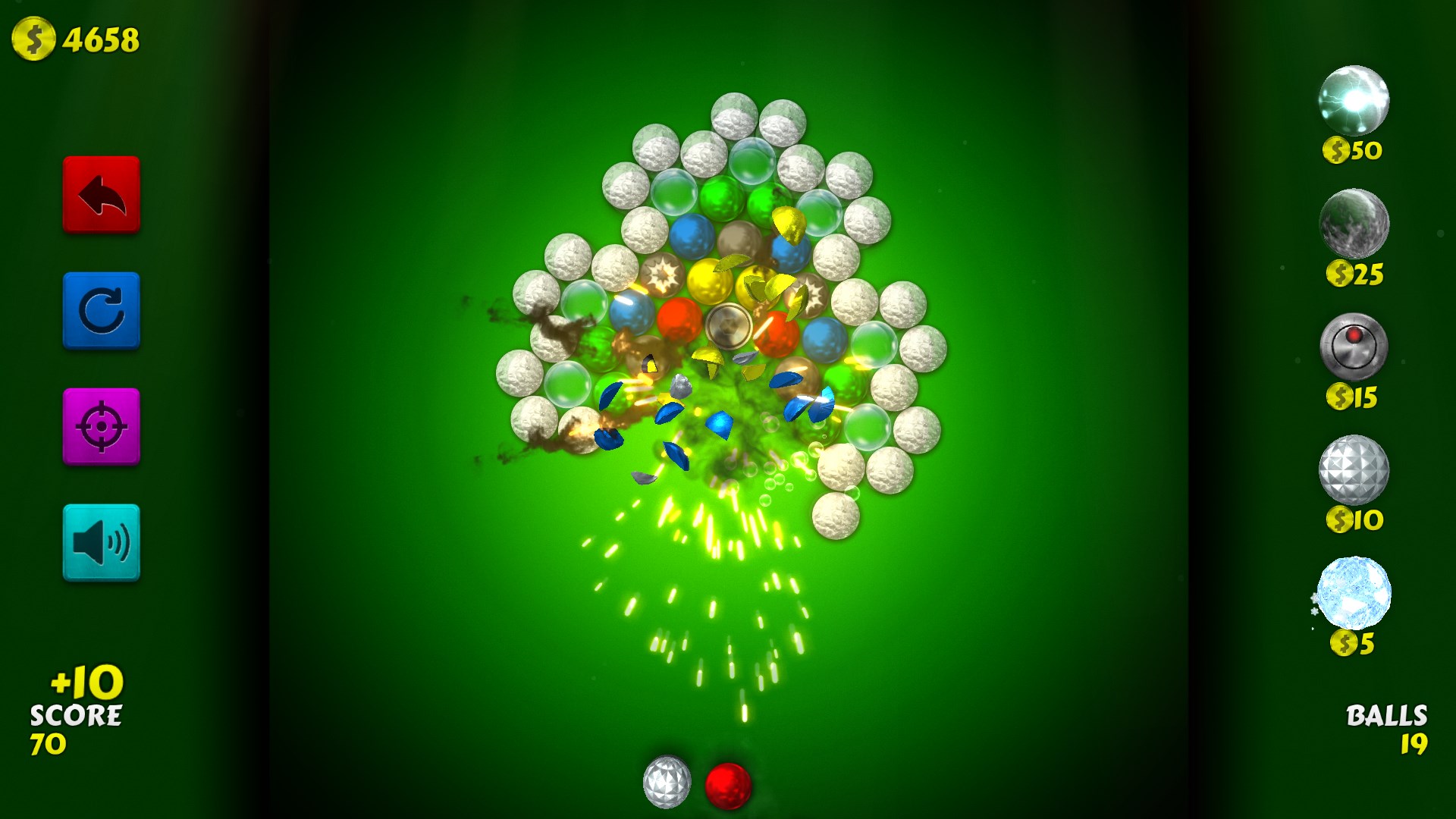 Your goal is to clear all the balls from the board, scoring as many points as possible.