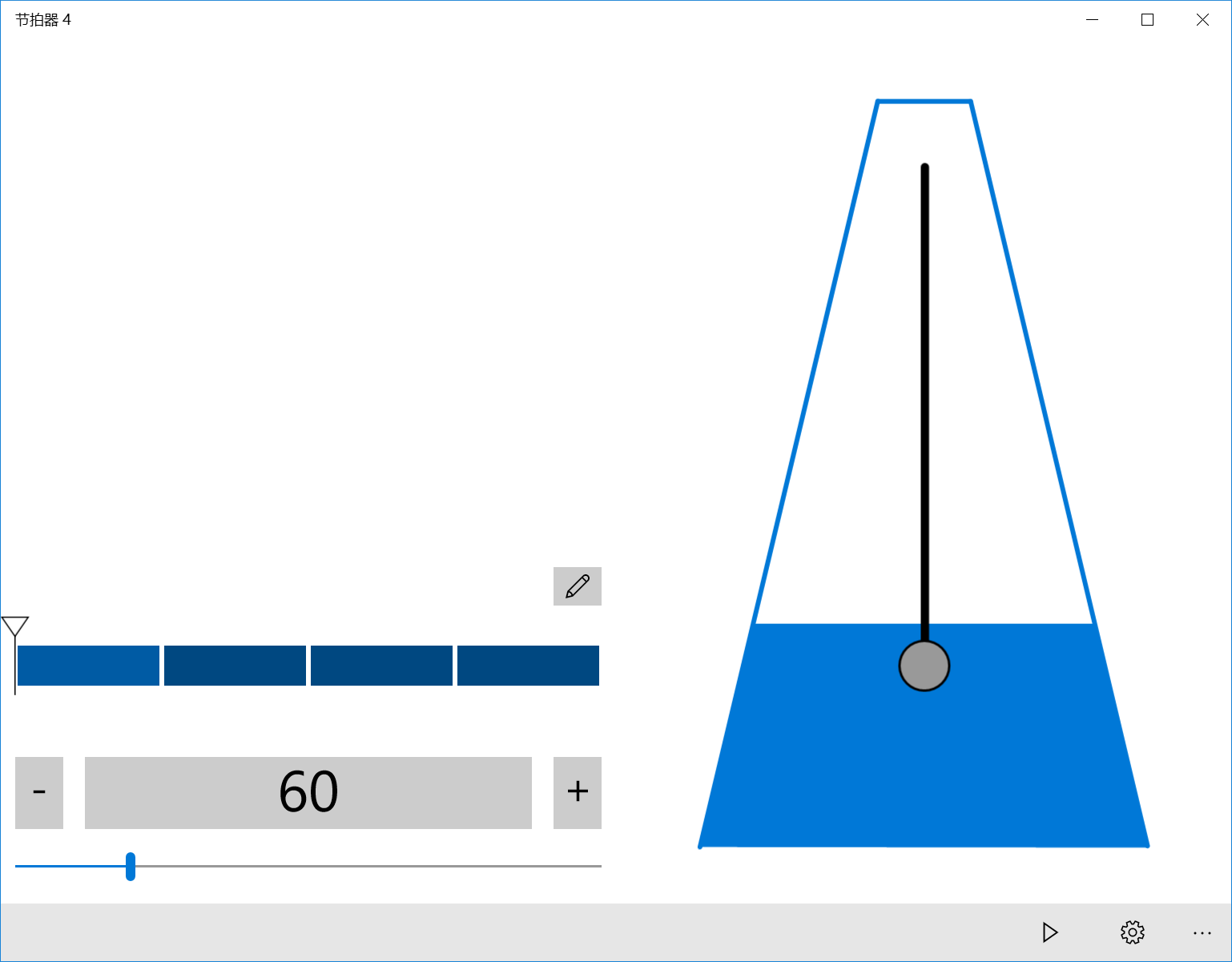 This is a metronome with beautiful animation. It is light and useful, and well designed for Windows 10. And it is first metronome that supports background running! (Requires Windows 10 1607)