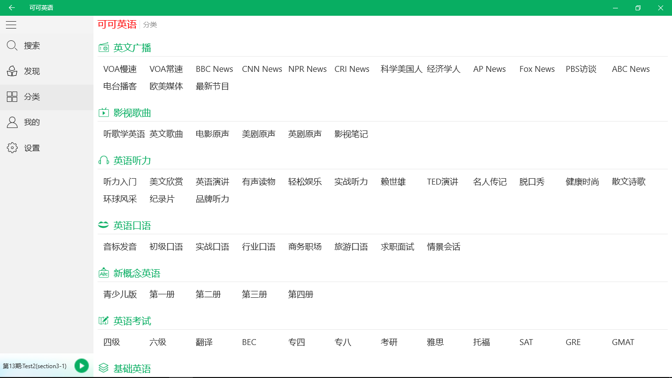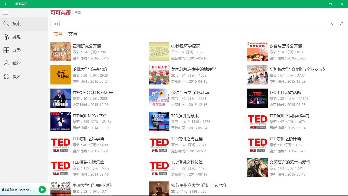 3、英语听力:入门听力、新概念英语、美文欣赏、英文演讲、有声读物、TED公开课、纪录片…