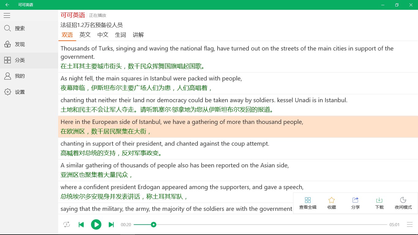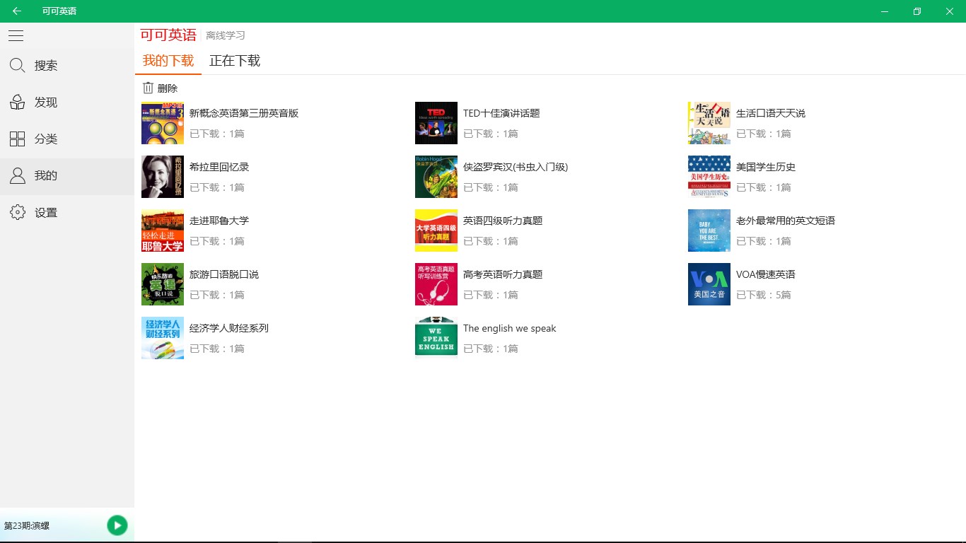 2、离线收听:离线收听节省流量,高速批量无限下载,便于随时随地学英语;