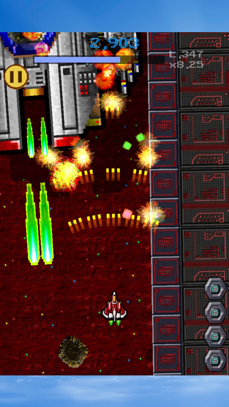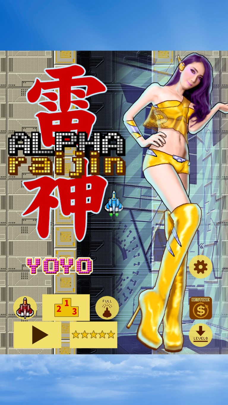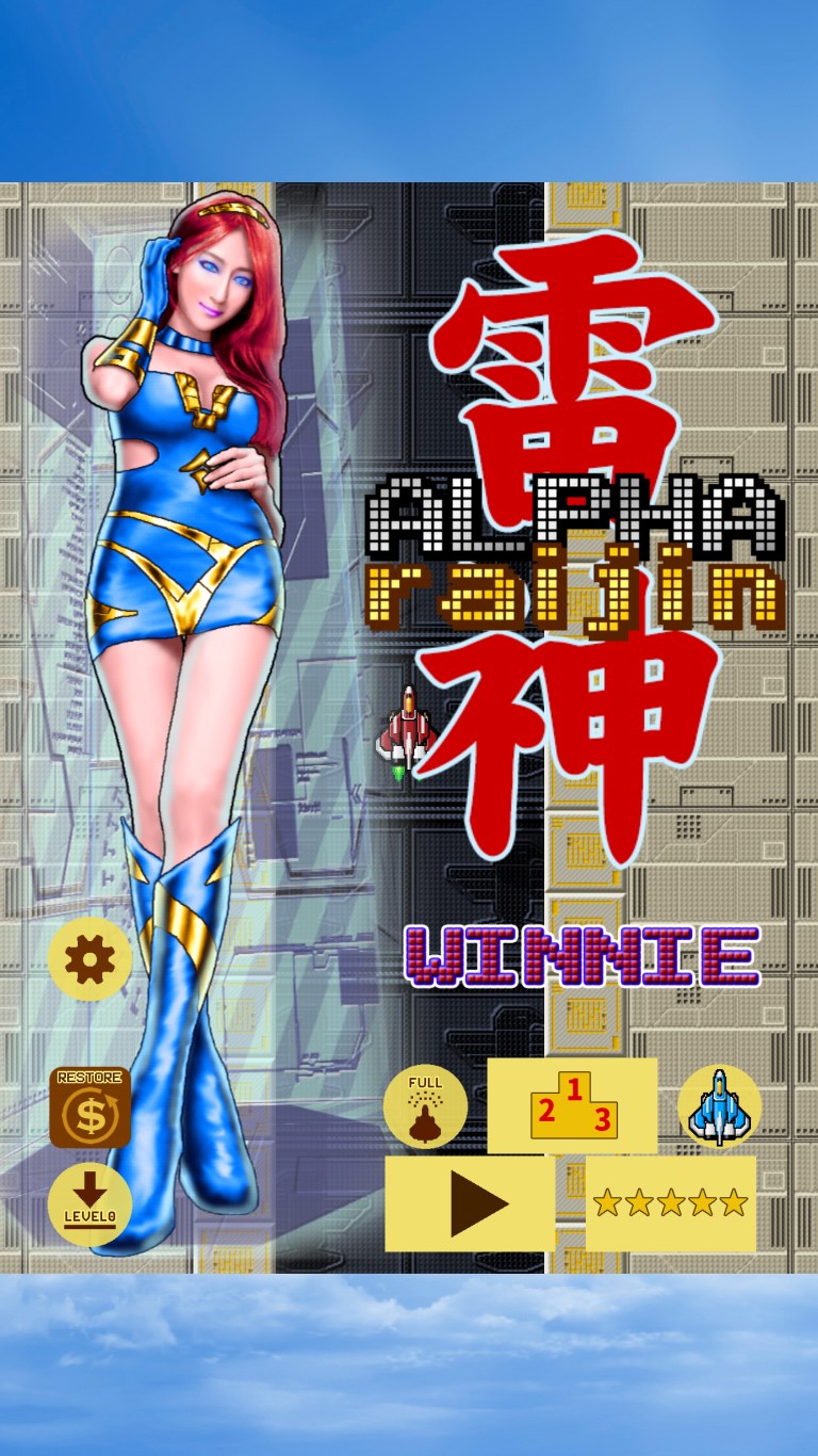 The "Alpha Raijin" is a ONE-TOUCH or GYROSCOPE type of PIXEL STYLE shooting game. This is a game inspired from Raiden designed by the ONE MAN INDIE developer who is the author of "Mirage Thunder" (A.D. 1993).