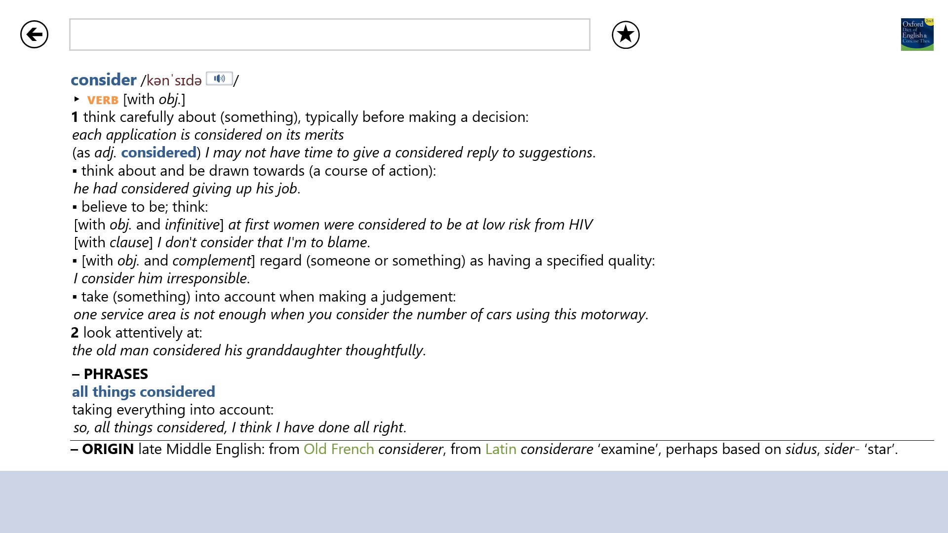 The dictionary app includes a number of features which help you to grow your vocabulary further: