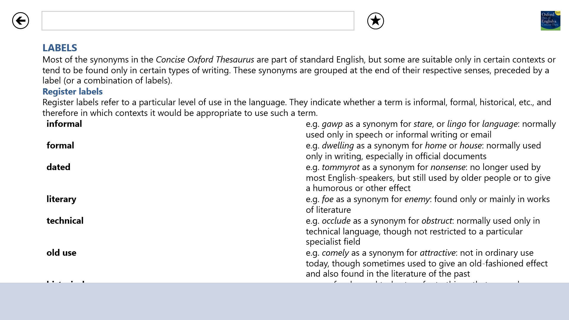 This dictionary software bundle includes the leading single-volume English dictionary, the Oxford Dictionary of English and the comprehensive Concise Oxford Thesaurus.