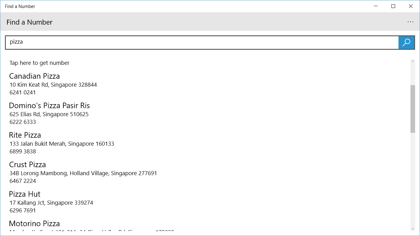 Don't have the phone number of your favorite pizza restaurant saved? Need to call the nearest hotels for availability? With Find a Number you can!
