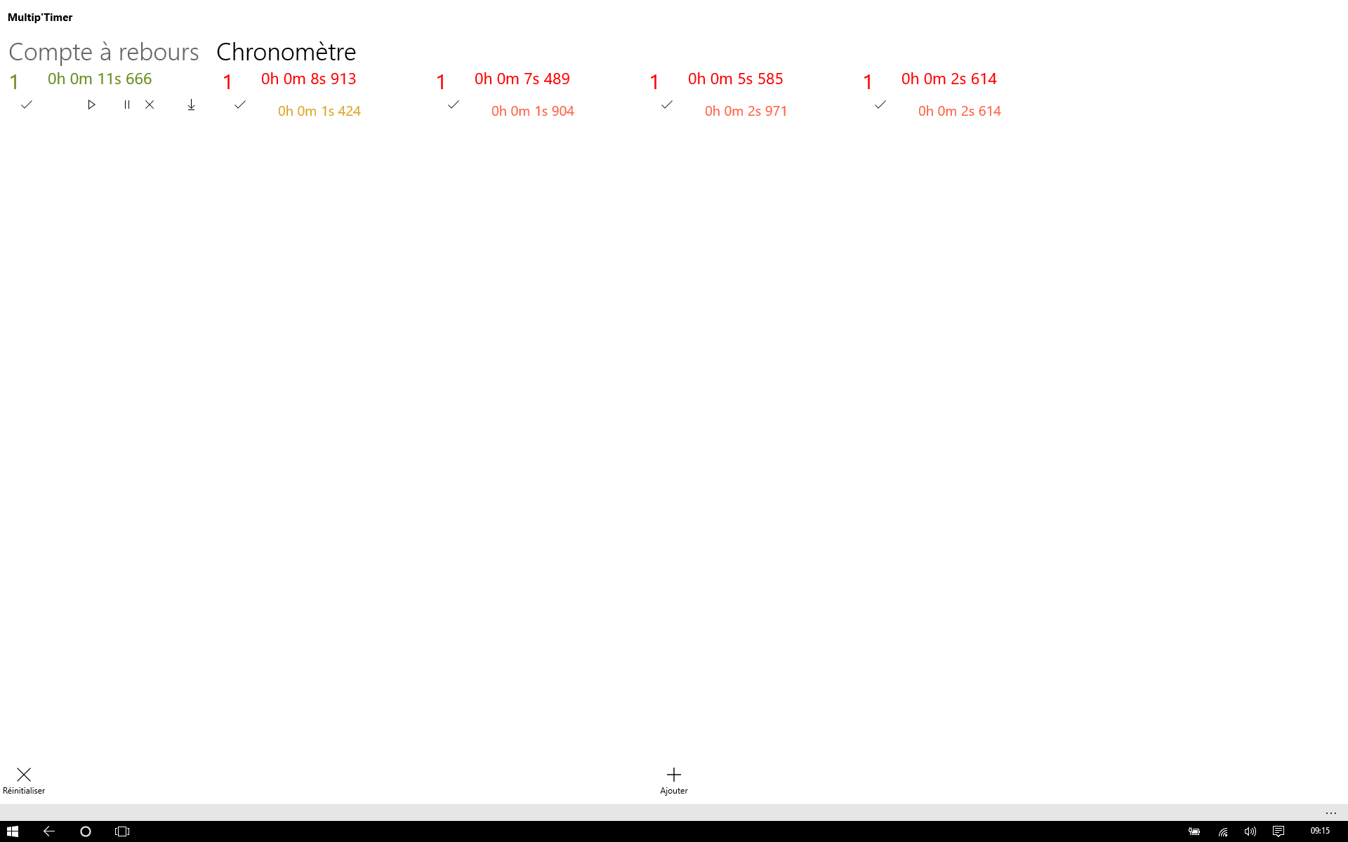 This application allows to enable and manage several countdown simultaneously. It is possible to reset or "mark" (the