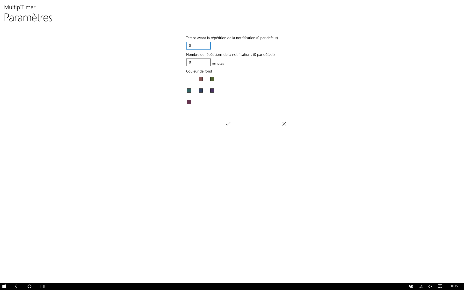 Warning: - This application uses the Windows notification system, so it is not possible to change the alert sound or vibrate to the end of the countdown.