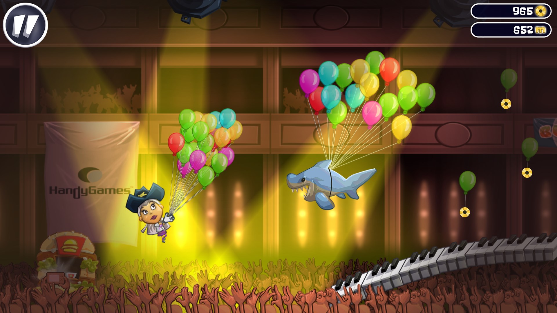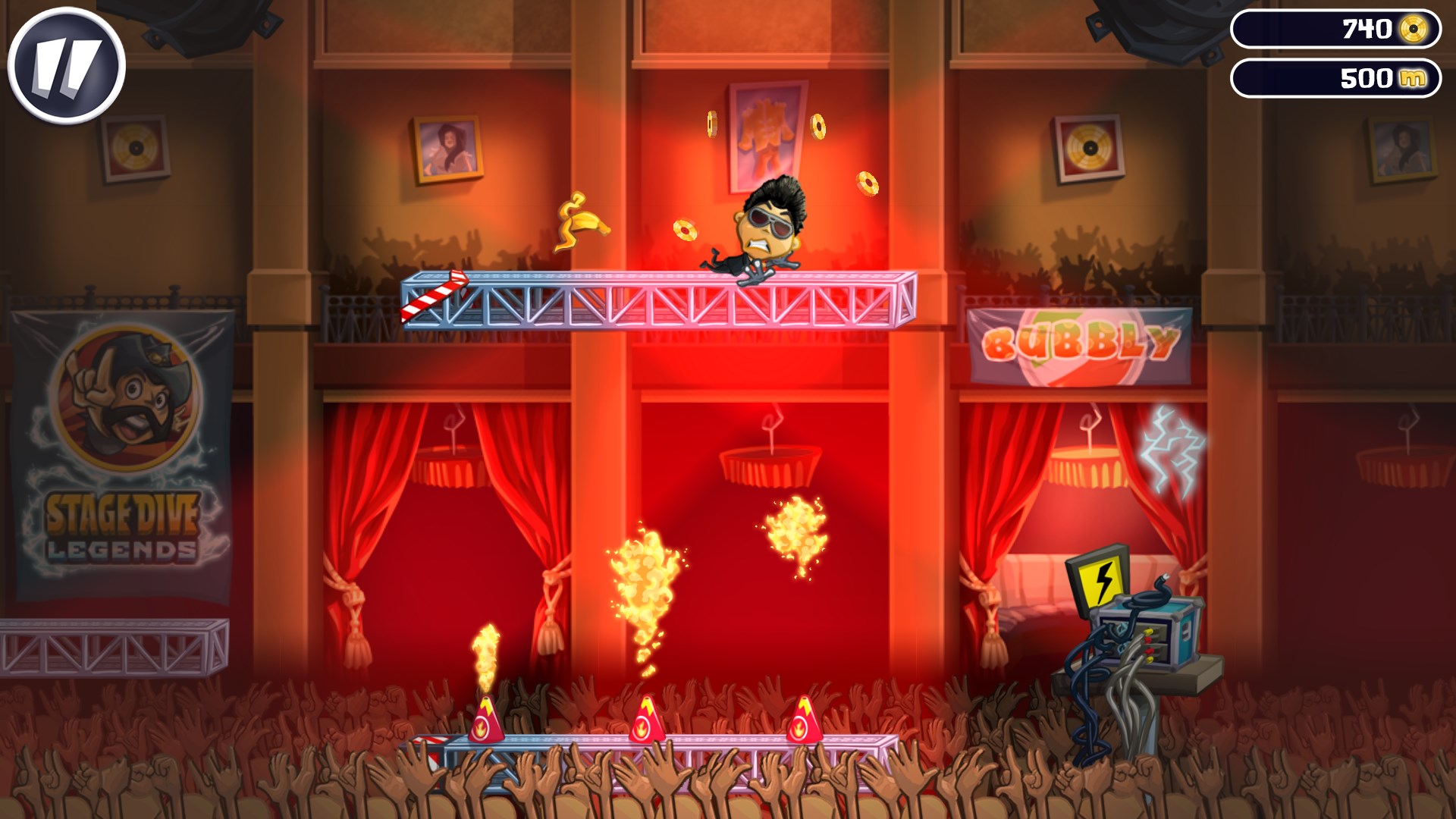 Smash your guitar, speed up and jump into the cheering crowd! Rush through the concert hall and get carried away by your freaked-out fans. Perform crazy stunts, collect golden coins and use amazing power-ups to entertain the party crowd! Avoid flying obstacles like bombs, bananas and the occasional burger.