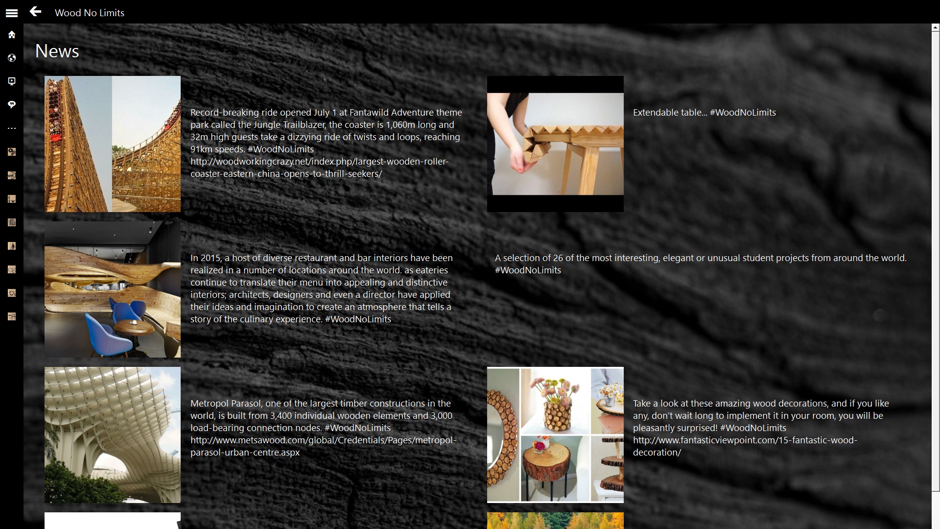 Wood No Limits by ilFiammingo is all about wood! All sorts of info regarding the wood industry, architecture and design, furniture, engineering and science, arts and crafts, forestry and trade, etc.