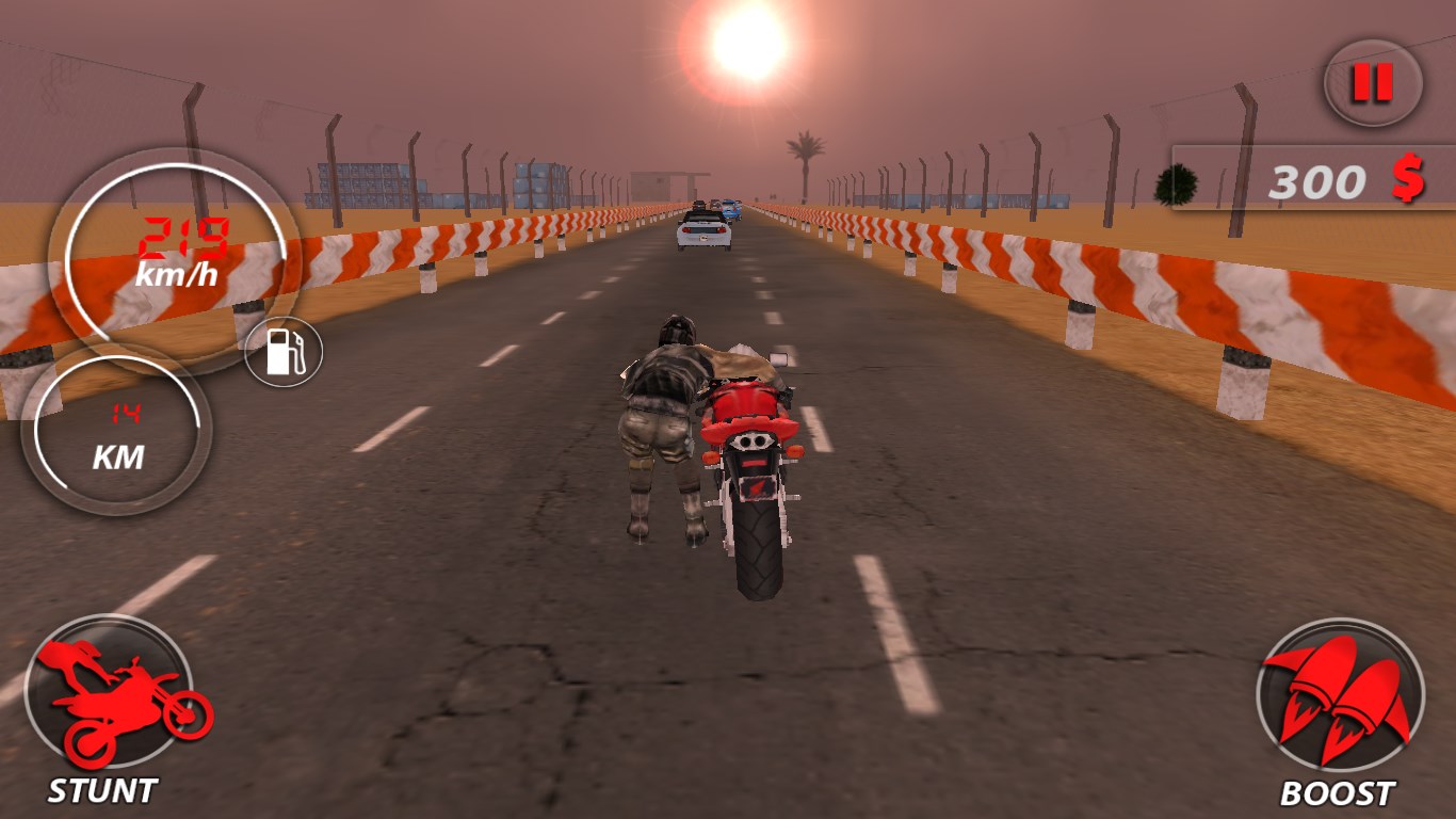 You never dare drive so fast in the real world! Control your motorcycle with incredible fast speed during traffic rush time! Tap turbo boost to increase your bike speed.