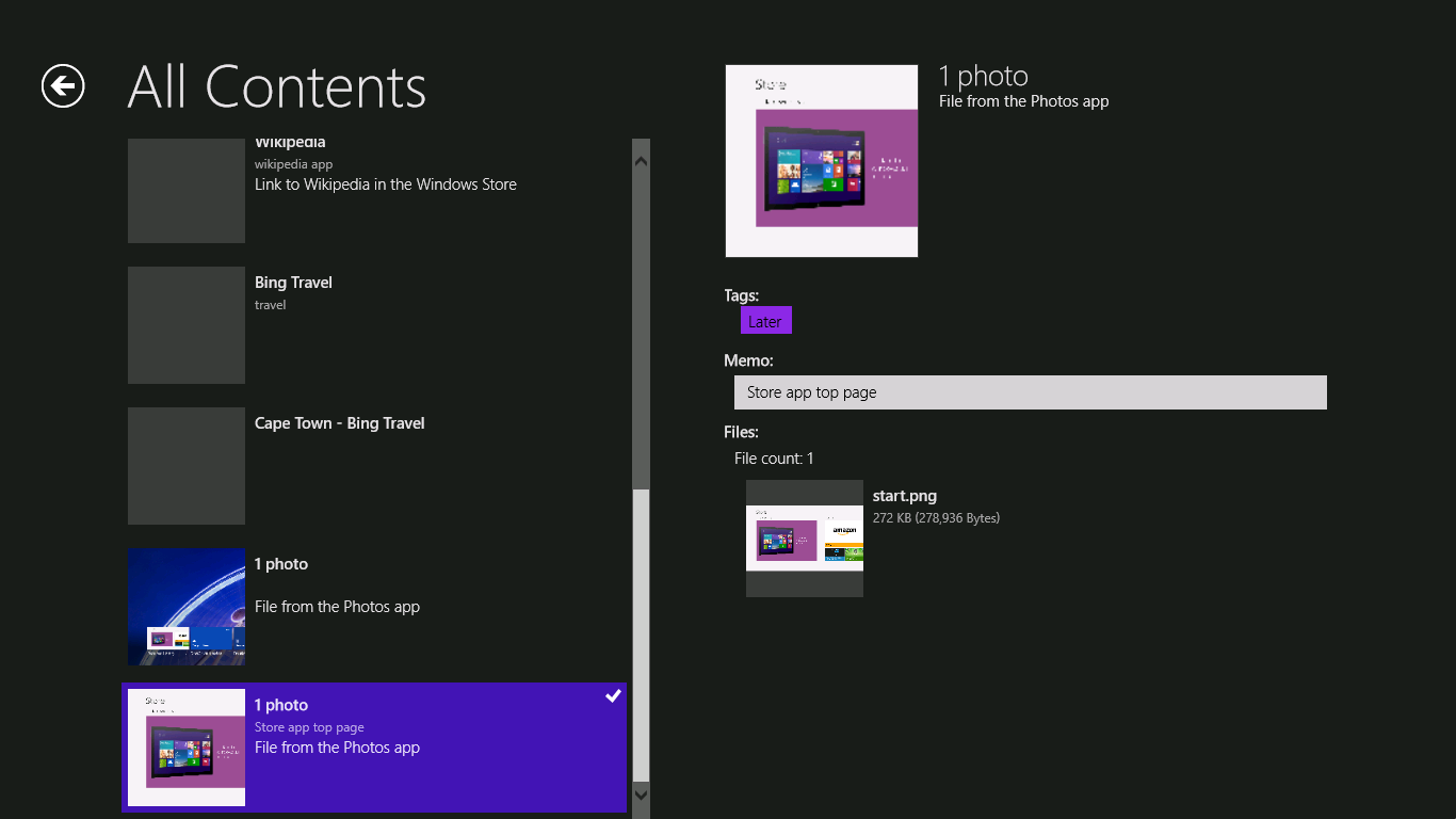 Using this app, you can store the content that has been shared from other apps, you can browse these, and you can share to other apps again.