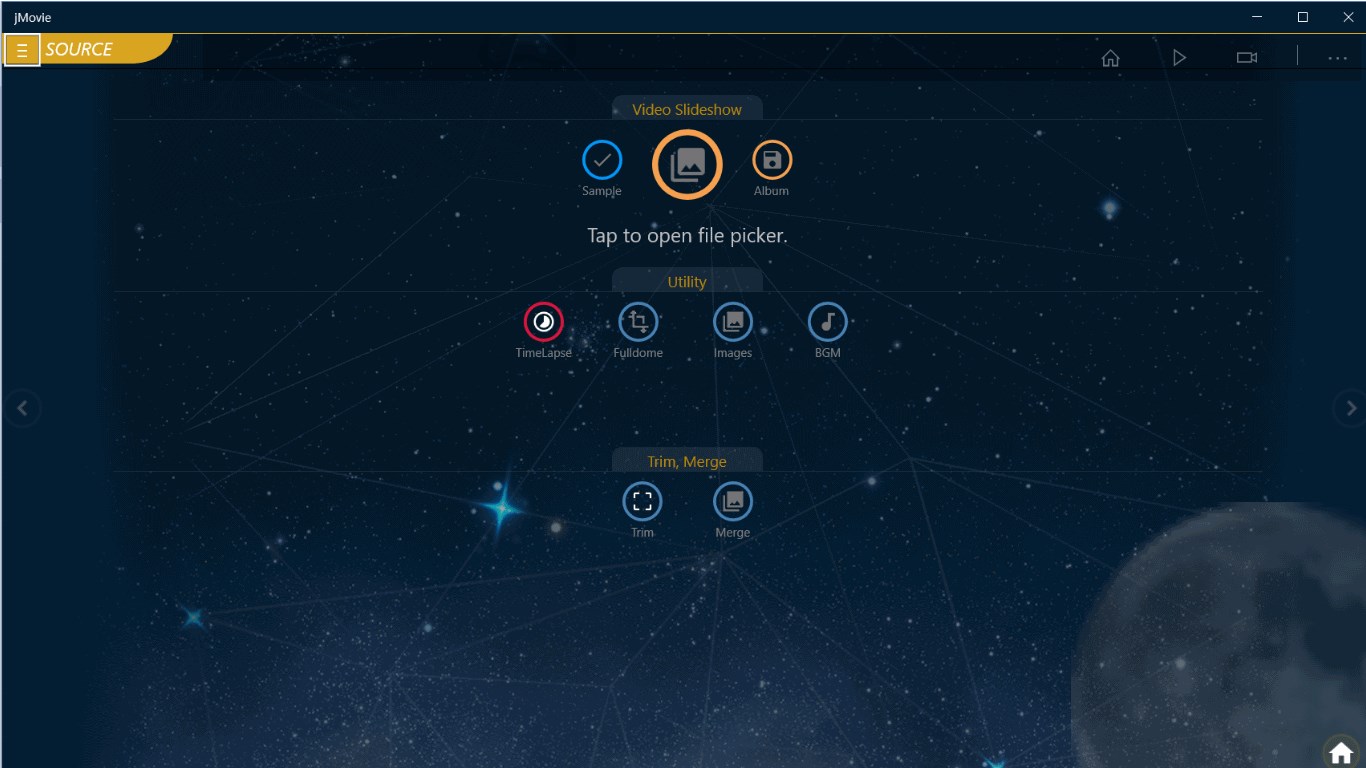Easy-to-use wizard-style UI.Set a variety of transition effects , or can be set to random.You can set the font and position of the caption for each picture.You can insert background music in mp3.Export to Full HD 1080p.360 Video to Fulldome Videotime-lapse videoAdd your own watermark to your Video.Extract audio from video.
