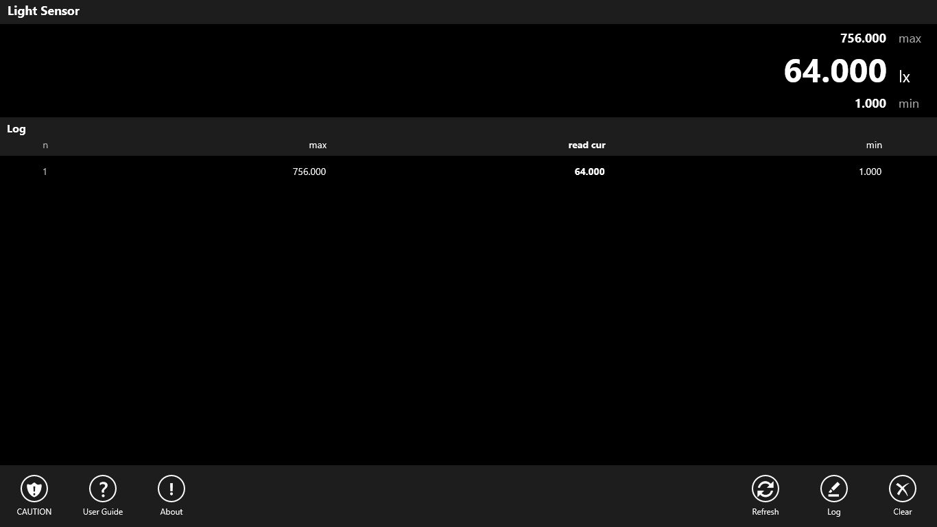 Ambient Light Sensor; reads value in lux, logs maximum and minimum values.