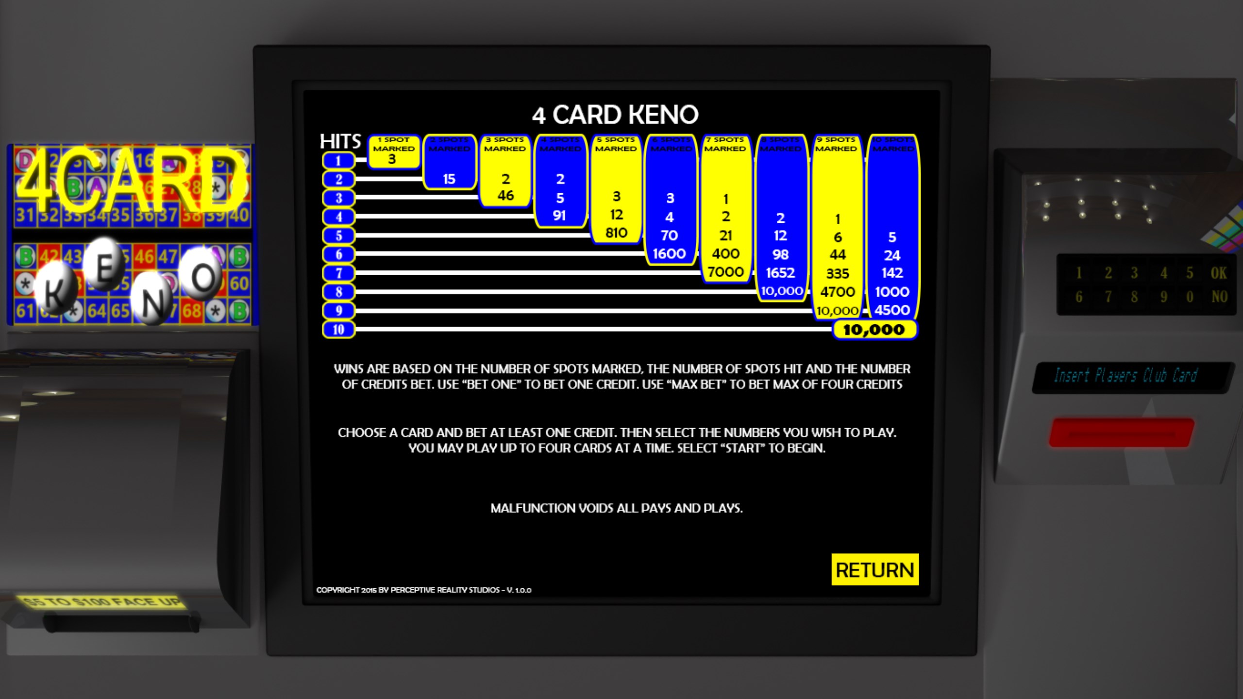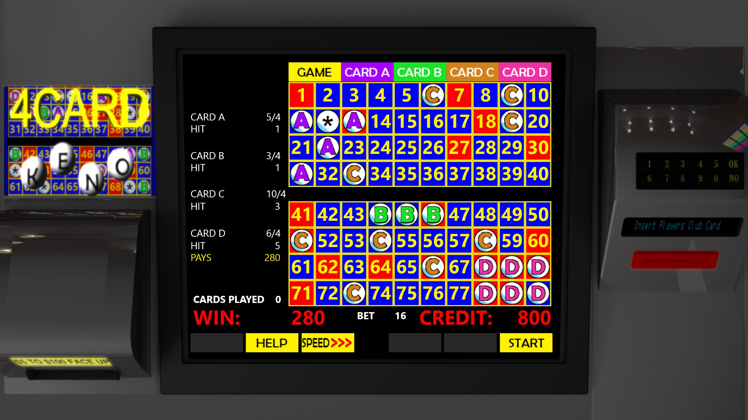 Las Vegas tavern style four card video keno.