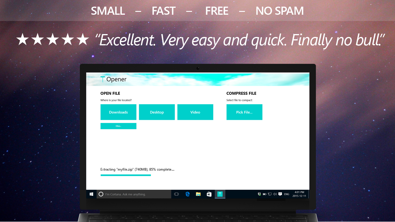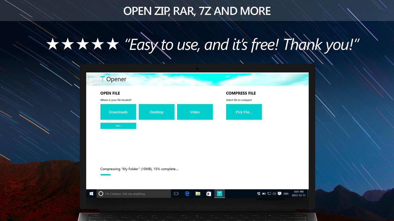 The Easiest Unpacker: Single Click Operation, Packs & UnpacksThe Smallest Unpacker: Won\'t Clog Your ComputerThe Most Efficient Unpacker: Saves Your PC\'s RAMThe Fastest Unpacker: Tuned For SpeedOpens & Extracts Archives in a Single OperationSupports All Your Favourite Formats, including .zip .rar .tar .gz .gzip .bz .bzip .bz2 .bzip .7z .7zip .lz .lzh .lzma .lz4 and a bunch of others (with more added every month)