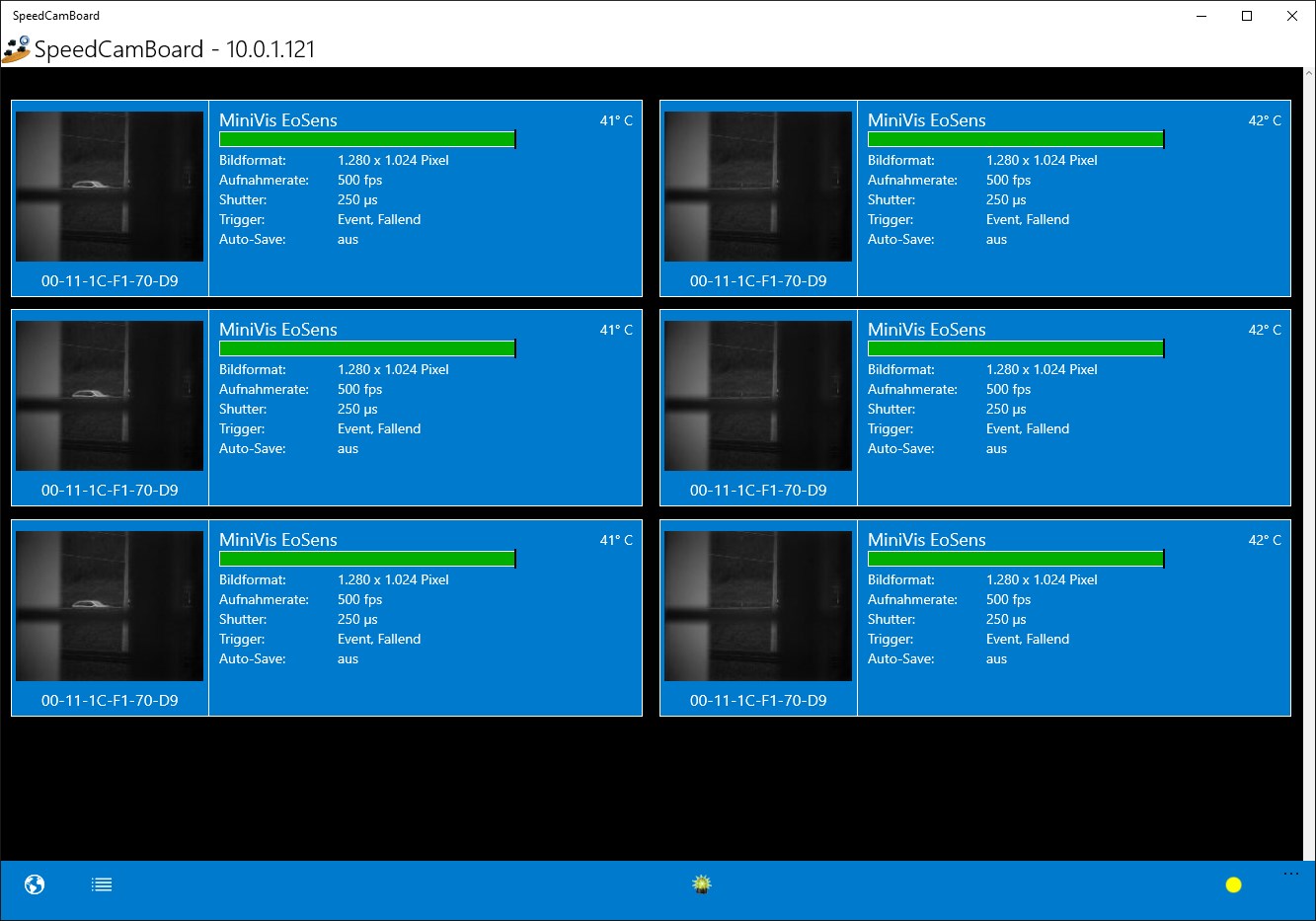 Overview over up to 24 cameras connected to your networkVisualization of live images in full screen modeMode change of all cameras in live low-light, focus and setup modeMonitoring of recording and downloading process