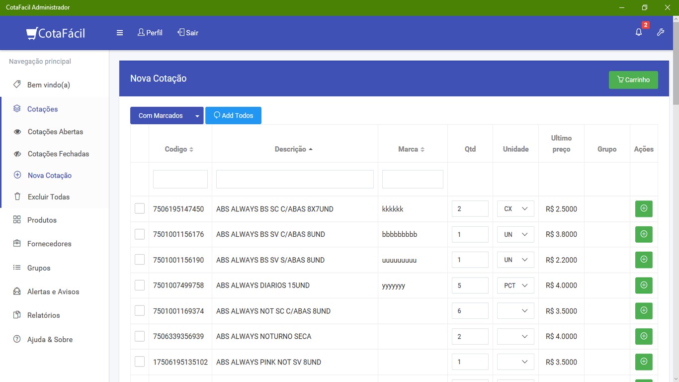 Acesse sua conta CotaFácil e gerencie suas cotações, produtos e empresas com facilidade de qualquer lugar! Caso ainda não seja assinante, cadastre-se conosco agora mesmo! Gostaria de testar gratuitamente por 30 dias? Entre em contato conosco e solicite um período de testes!