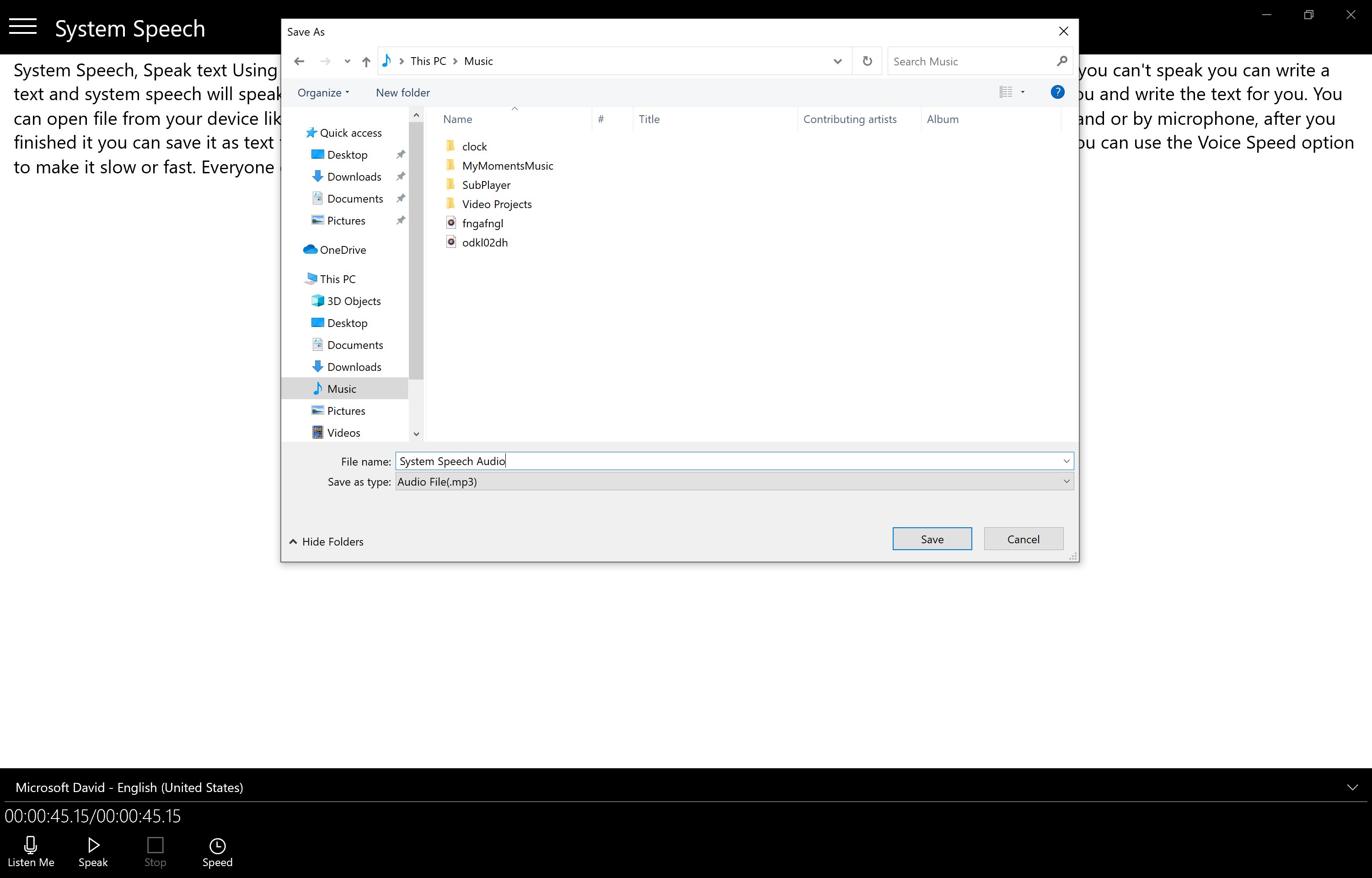 *Save Text As Audio (*.mp3, *.mp4, *.wav)