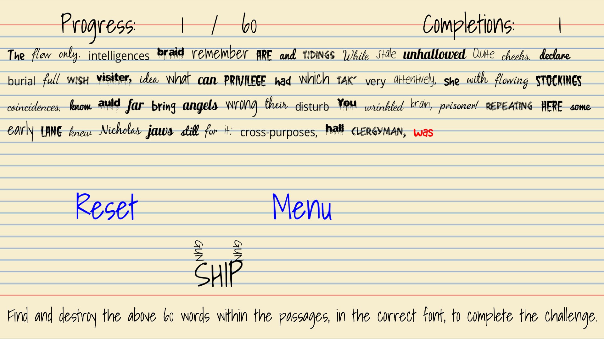 Twenty levels straight from classic literature, including Hamlet, Pride and Prejudice and FrankensteinSix different fonts to play withDestructible menusMultiple control schemes (keyboard, controller, touch or tilt)A secret level is hidden within, revealed to those who would prefer that the main menu was a bit blanker...
