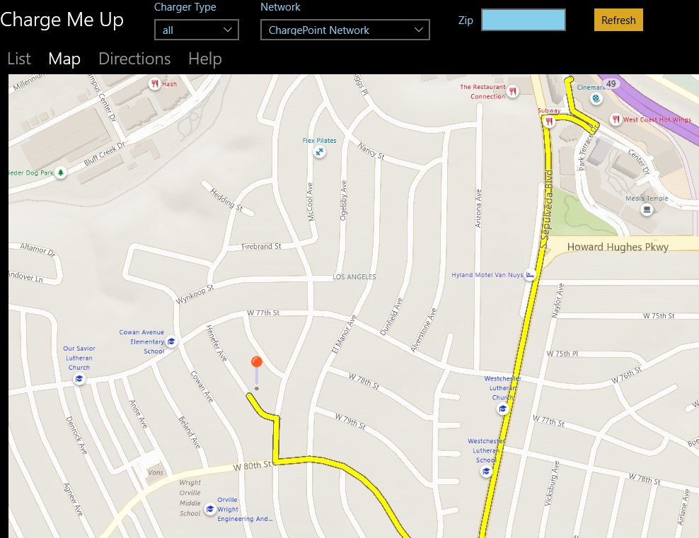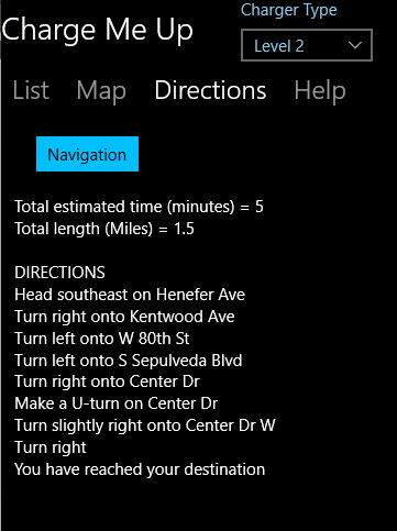 This app will locate open public electric vehicle (EV) charging stations closest to your current location. You can restrict the charge station list by type, such as DC Fast and network, such as Chargepoint. A zip code can also be entered to specify a location. When a location is selected, it is displayed on a map with voice guided turn by turn directions.