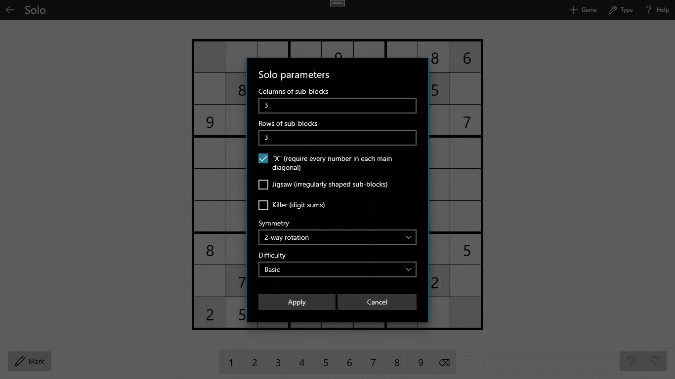 The Windows Store version of Simon Tatham's Portable Puzzle Collection, containing 40 single-player logic puzzle games. All puzzles have customizable difficulty and alternate game modes.