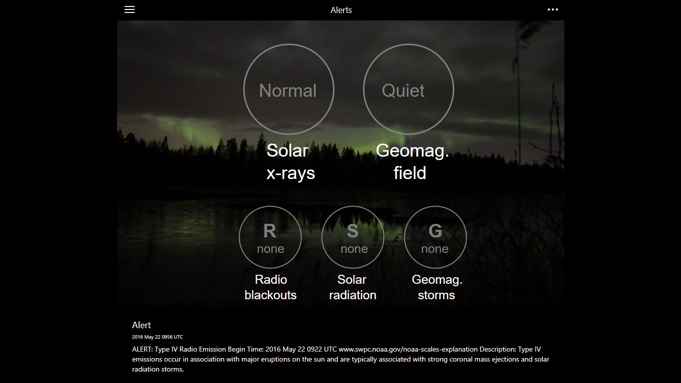 The original Space Weather app for Windows! Only a glance or a few taps away from real-time space weather.