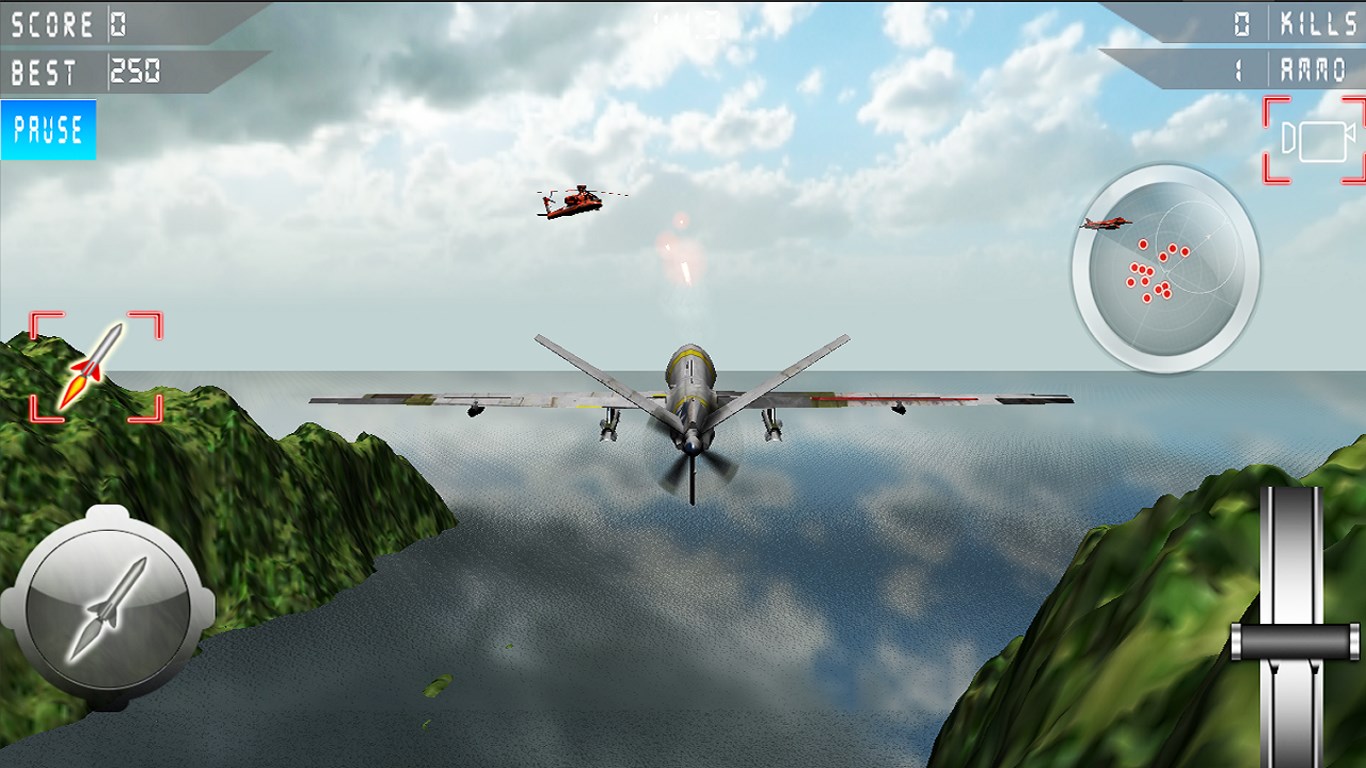 Drone Strike Combat 3D is one of the best action flight game available for a Windows running devices. The game features multiple interesting levels with immersive environments and landscapes. The game uses latest 3D development technologies to provide you the best gaming experience on Windows device. Drone Strike Combat 3D features military aerial warfare gaming experience. Your homeland has been attacked by enemy aircrafts. As a predator pilot you have to stay attentive, attack, and shoot enemies air crafts before they see you.