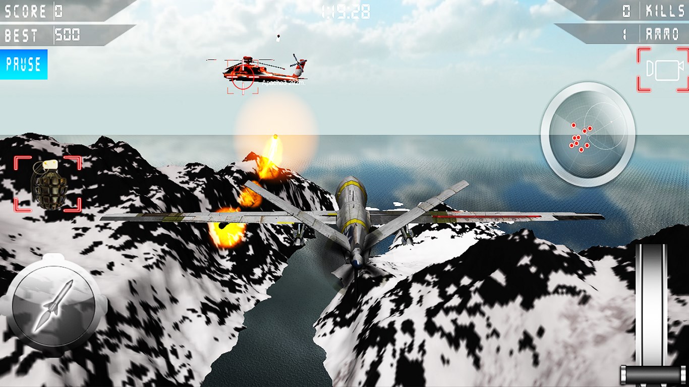 Touch supportKeyboard and mouse support for desktop PCAdvance radar systemEngine throttlingMultiple camera viewsShoot multiple enemy aircraftsAmazing 3D effectsThrilling gameplay