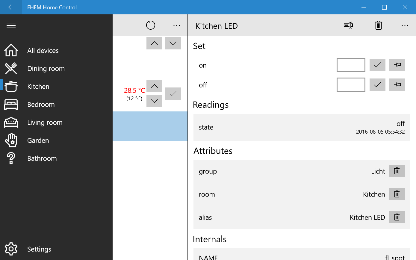 You can see all your devices sorted by room with readings, attributes and the option to execute every available command.