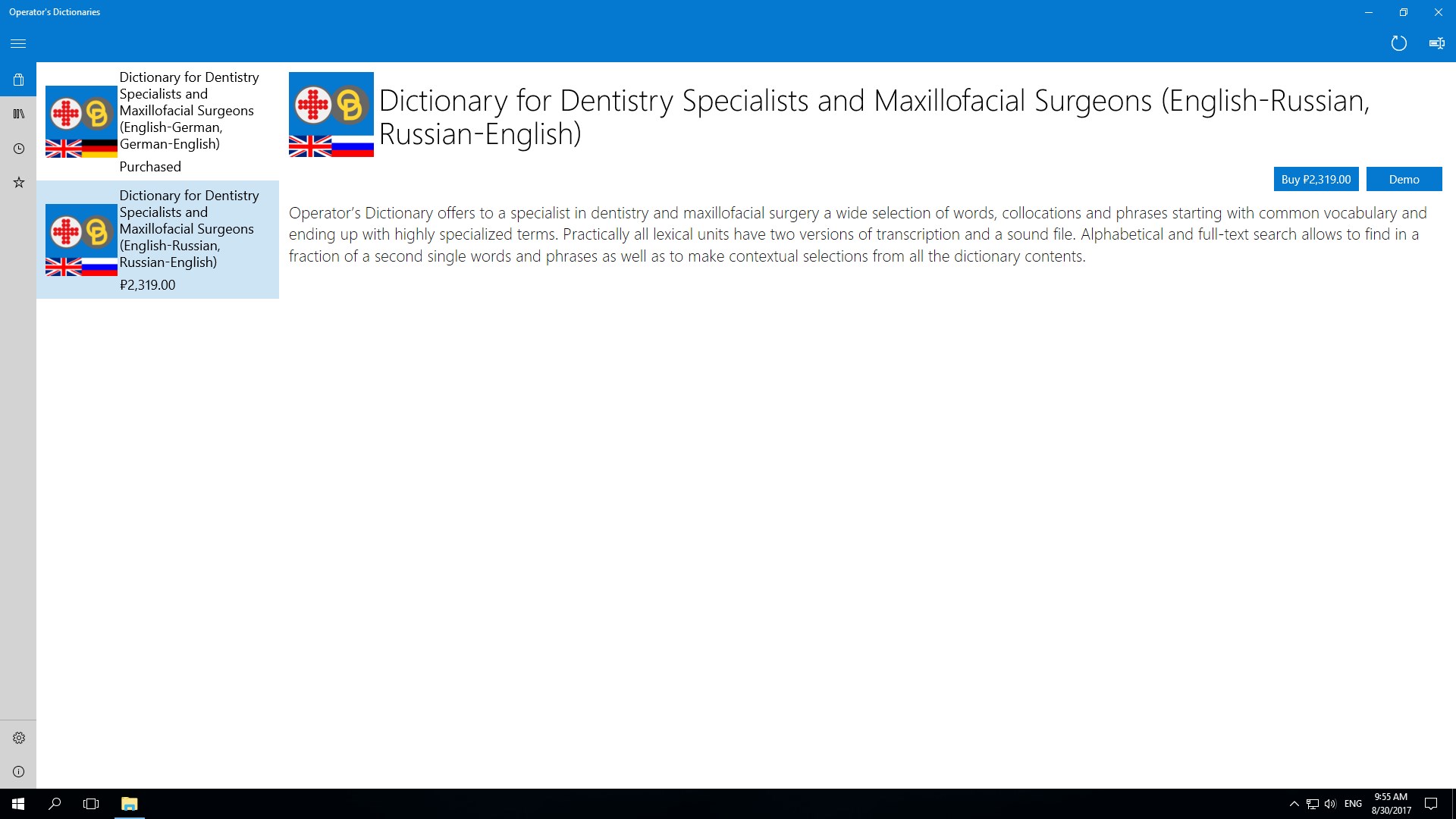 ∙ “Pin to Start” feature for instant access to purchased dictionaries from the Start menu.