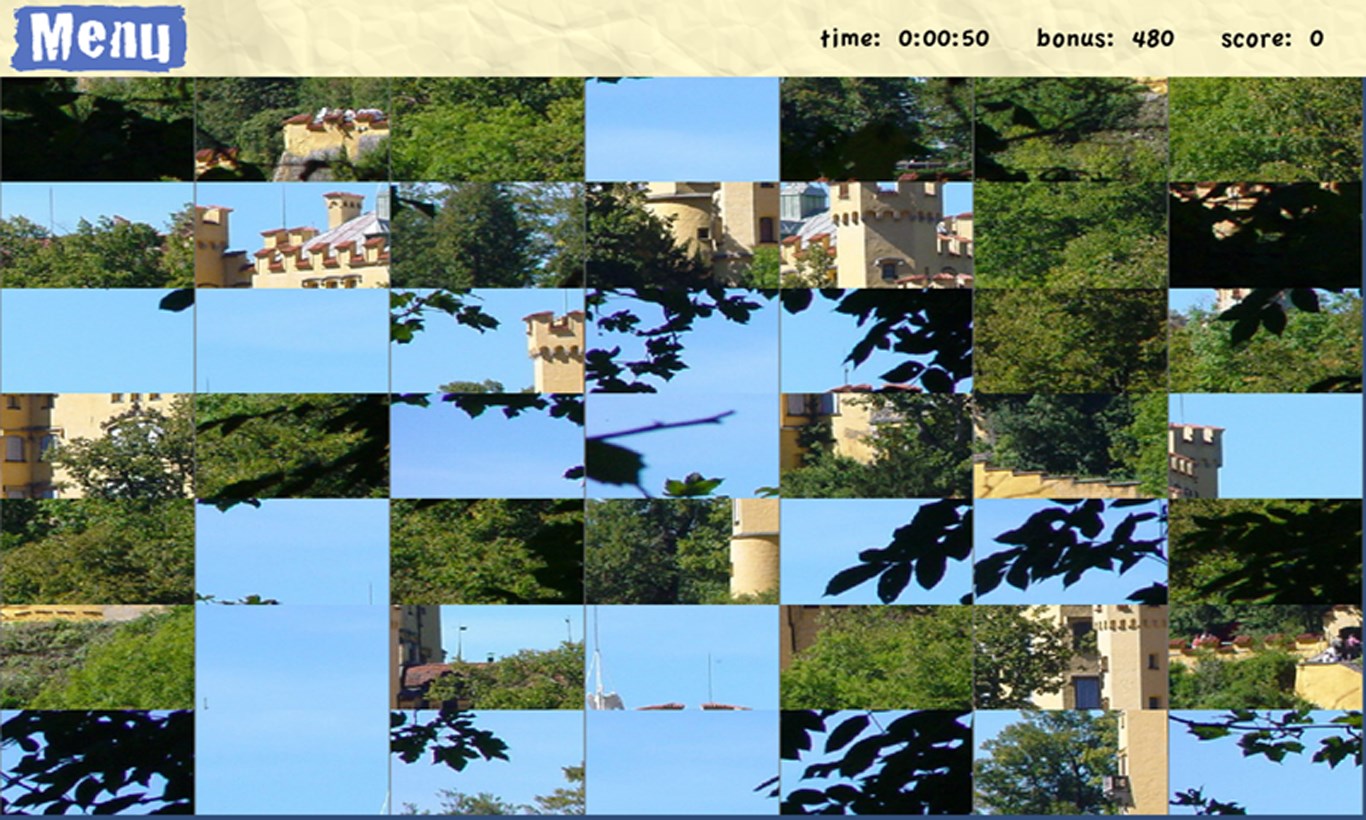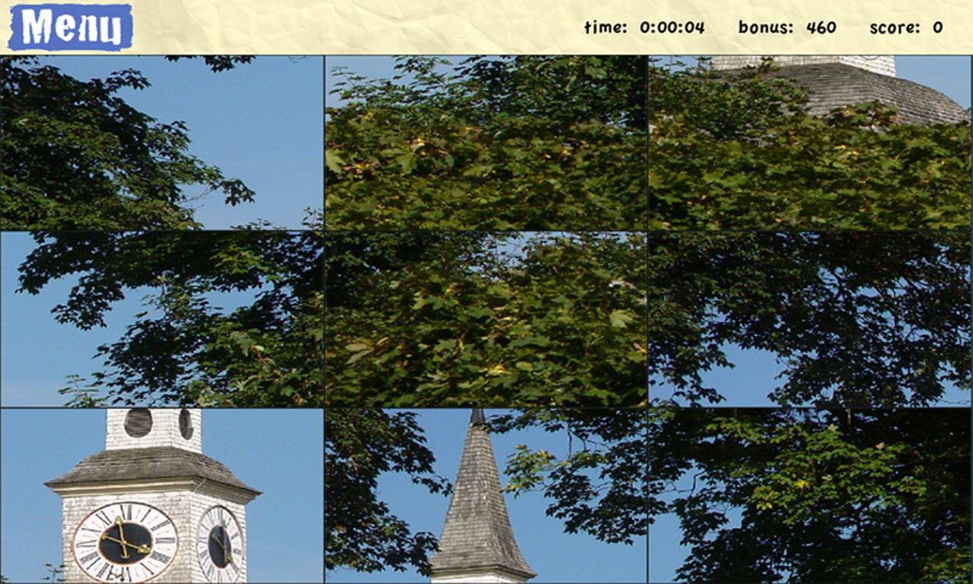 Different resolutions (2x2,3x3,4x4,5x5,6x6,7x7)100 different images Highscore local Save or load a gameModes: Relaxation / Time Trial