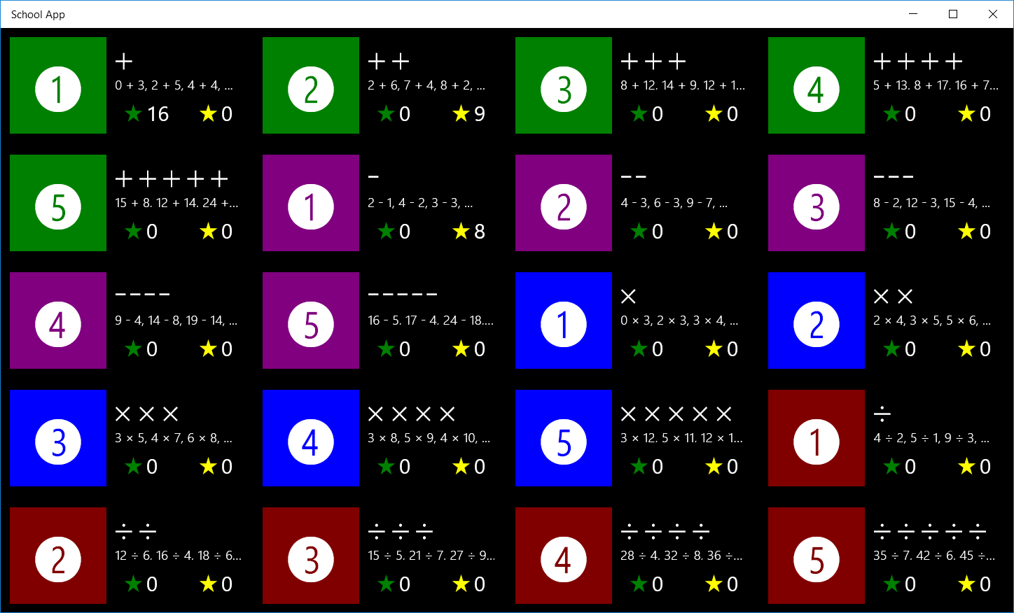 School is game for small children who would like to learn basic mathematical skills. School contains plus, minus, multiplication and division arithmetic operations which you can use to improve your mathematical skills.
