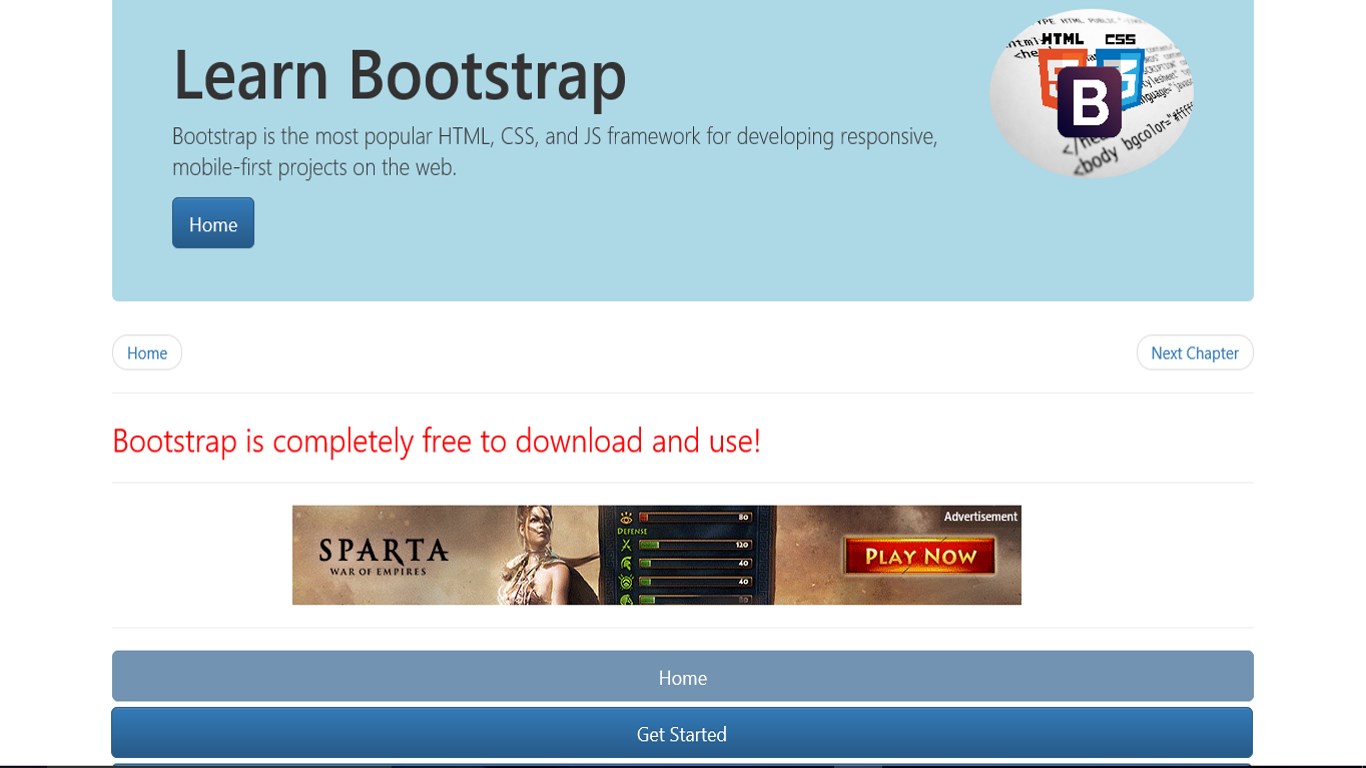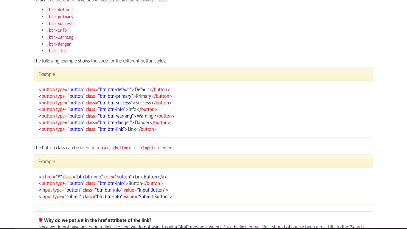 Bootstrap code snippetsHTML5 codeFinished example to see what code produces
