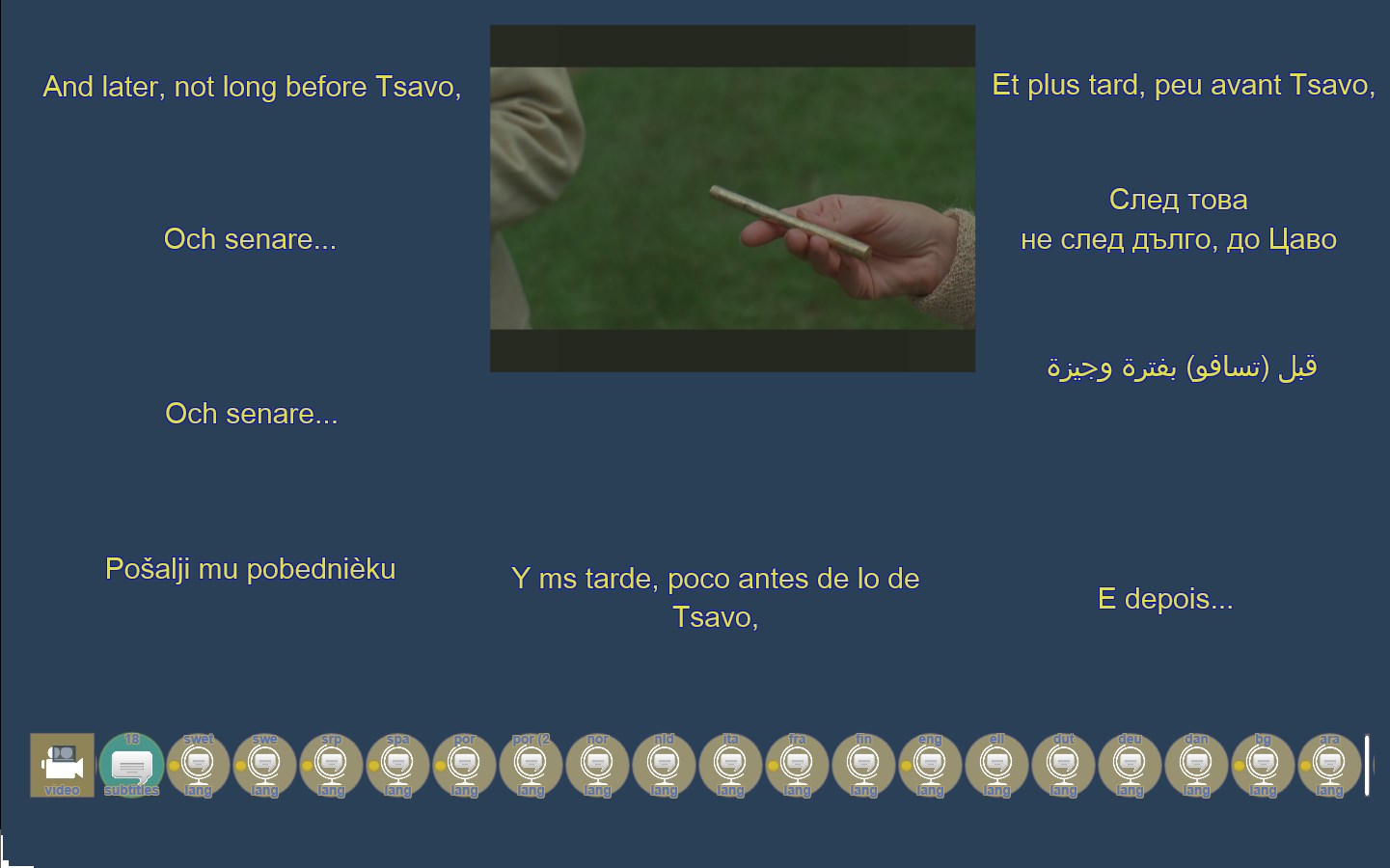 Modules: video player, music player, text UTF-8 viewer, html viewer, web browser.Configuration can be saved in up to 19 users. Modules are located in tabs.Taskbar shows modules in active tab.Modules can be resized, minimized, maximized, and moved.Buttons can be configured in size, color, and transparency.Each user has six color themes.Many subtitles per video can be shown at the same time. Each one can be resized and fully configured. Subtitles should be in UTF-8 format (encoding). Buttons can have descriptive text in one of the languages : Arabic, Bulgarian, Chinese, English, French, German, Hindi, Hindi-English, Italian, Japanese, Portuguese, Romanian, Russian or Spanish.Video can be hidden (so you can listen to audio with or without subtitles)Html Viewer & Web Browser with customizable font size