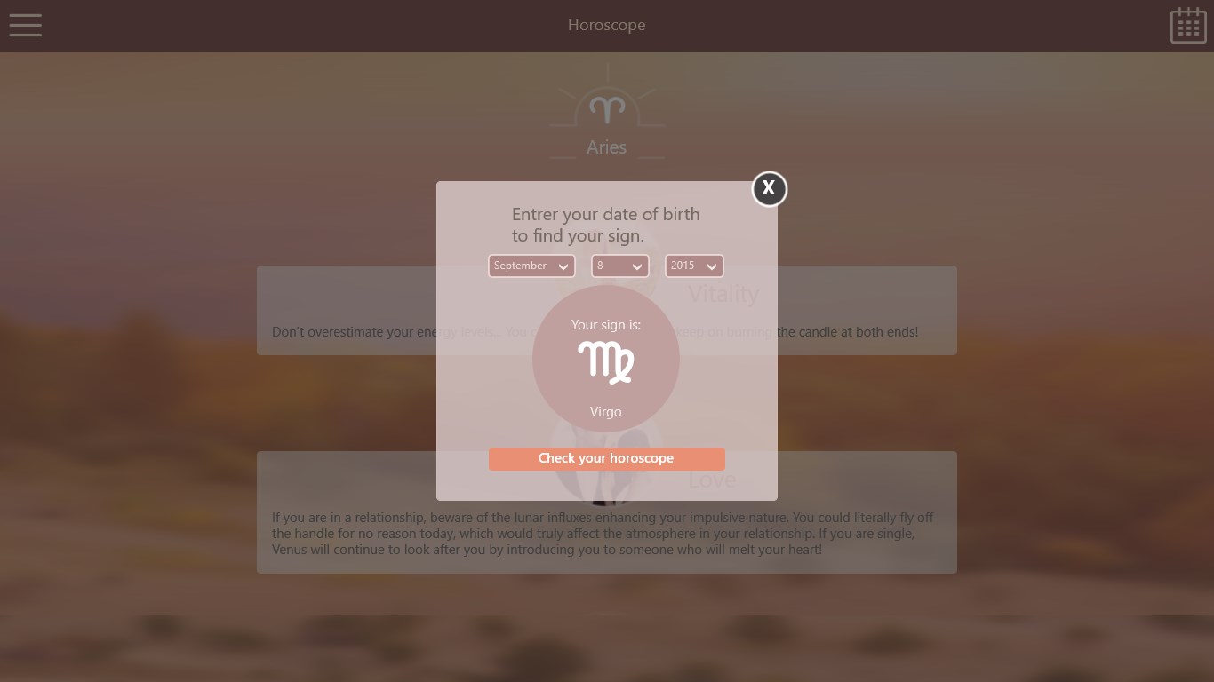 The Daily Horoscope application is certainly the most precise horoscope application and a great advantage to get a complete glimpse of your day.