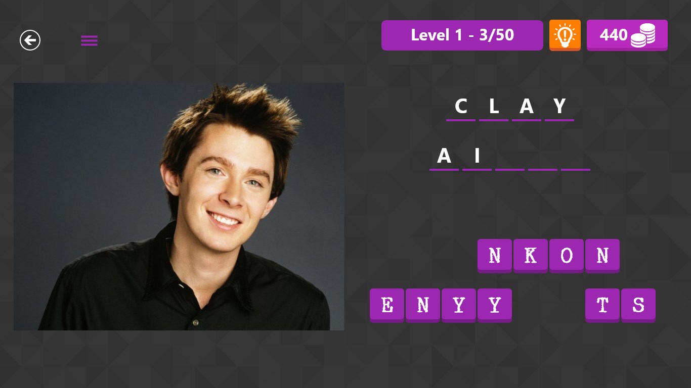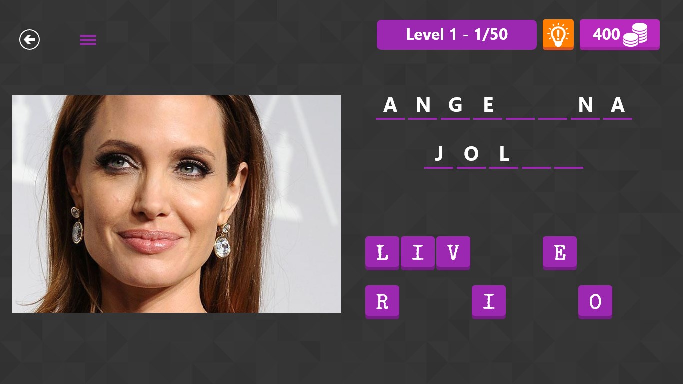 250 pictures of celebritiesHigh resolution photosSupports both Windows and Windows PhonePleasing in-game animationsNo login, no registration, just play!