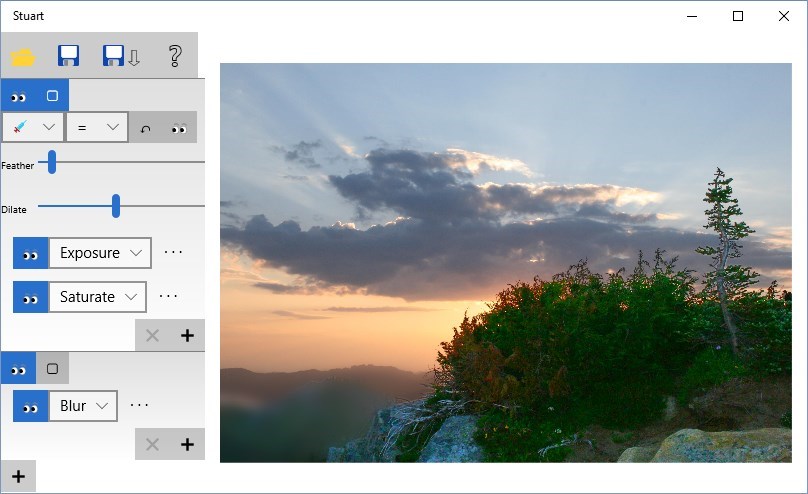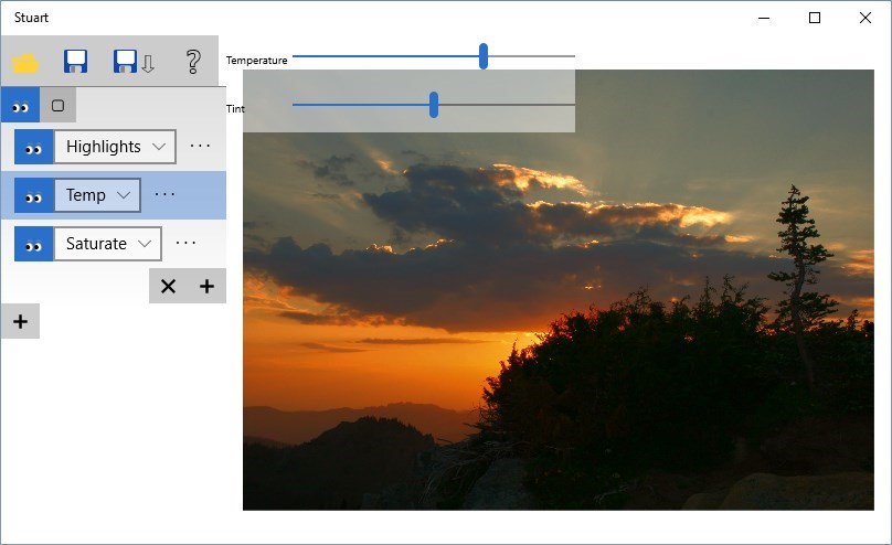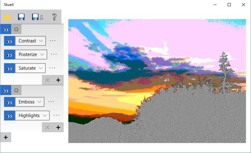 This is a simple, powerful, and contrivedly acronymed Windows 10 photo editing app, created during an app building exercise to test the Win2D graphics API.