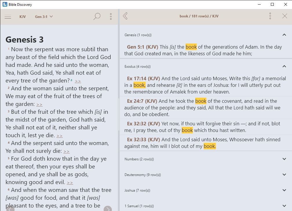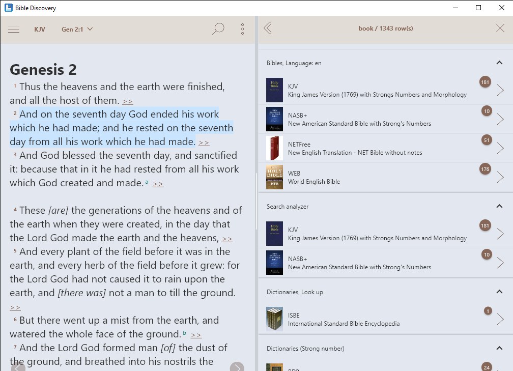 Using dictionaries you can understand the original message of the Bible betterWord Occurrence Analyzer for the Curious People!The cross references confirm the message of the verses in you!Parallel reading to compare the versesFind extremely complex phrases, word samplesThe Greek and Hebrew transliteration makes reading the original text easierBible-Discovery is a Bible study software