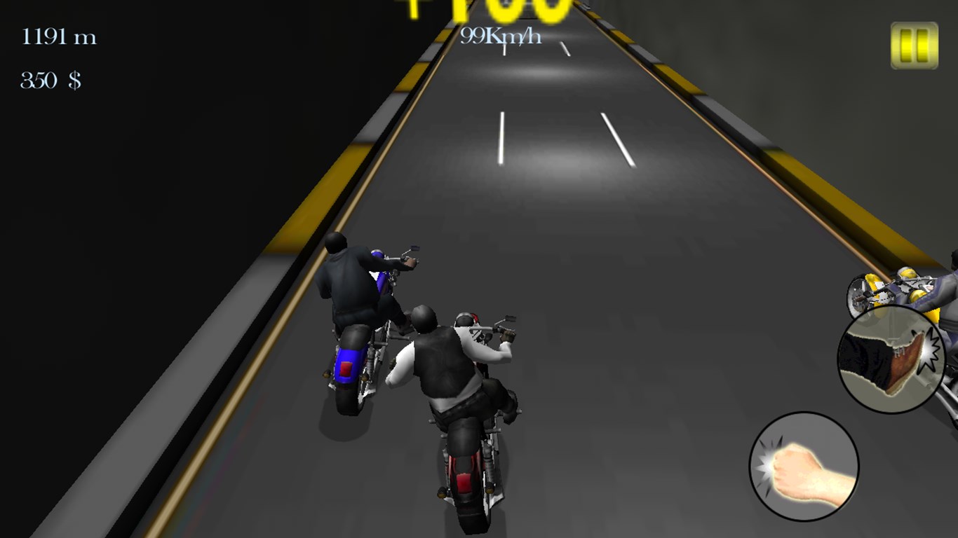 - Tap punch or kick button to attack the nearest biker