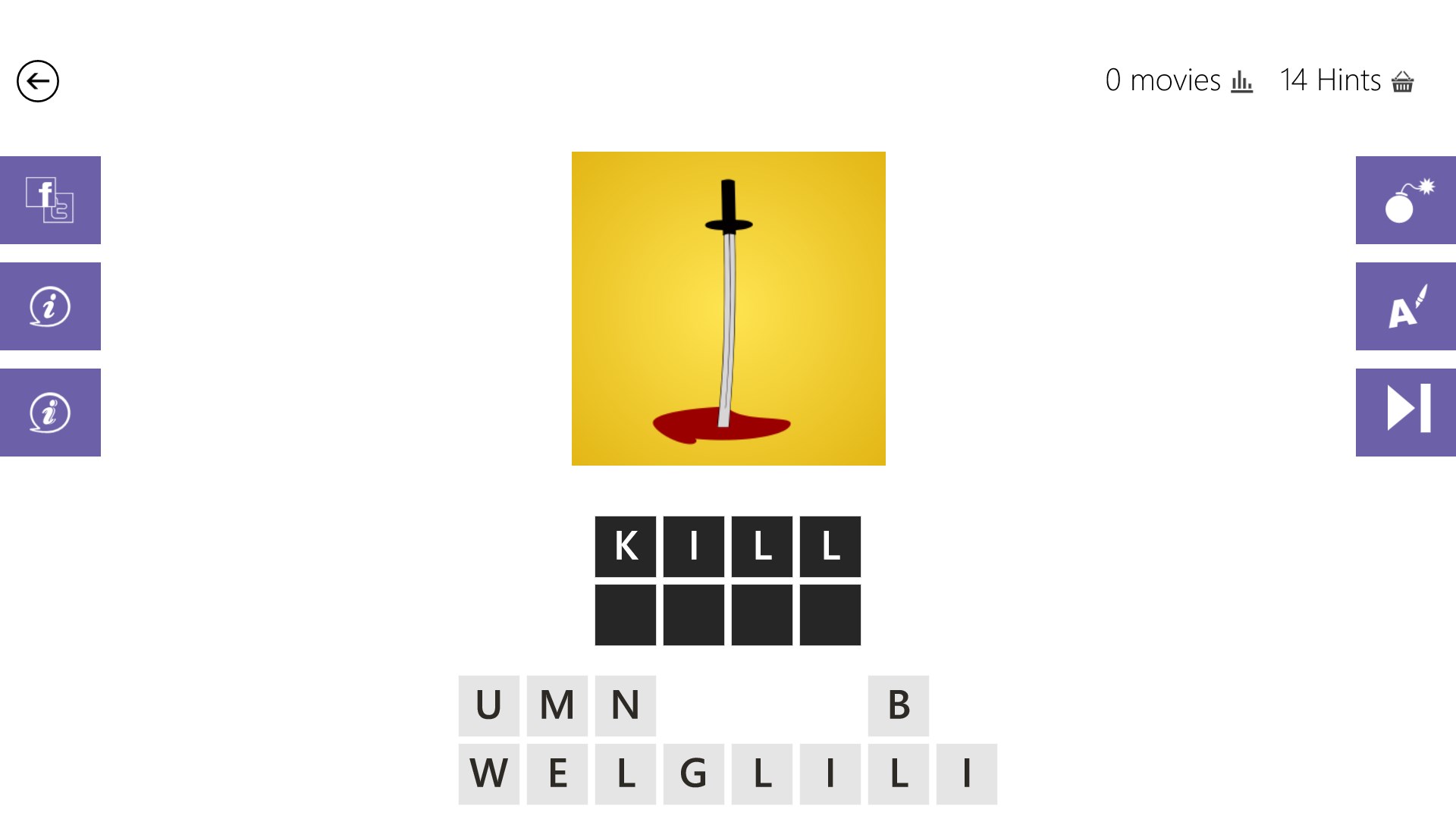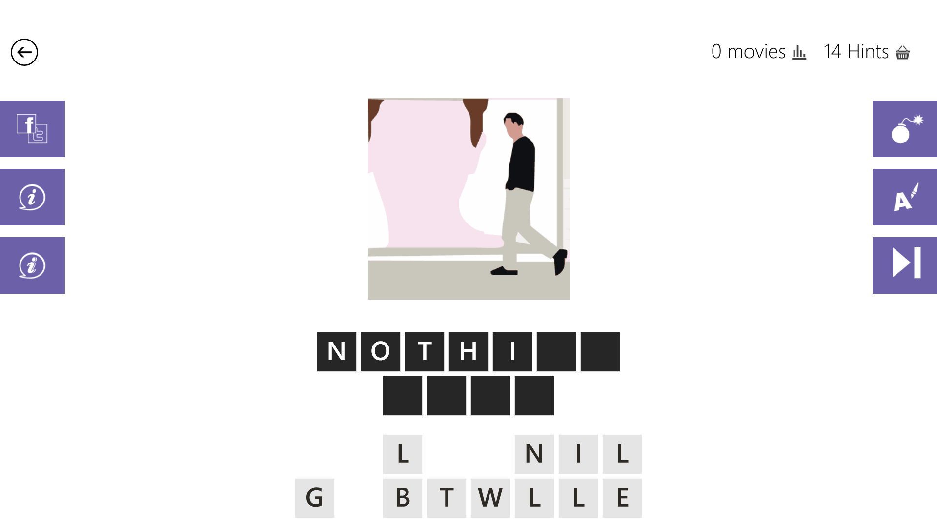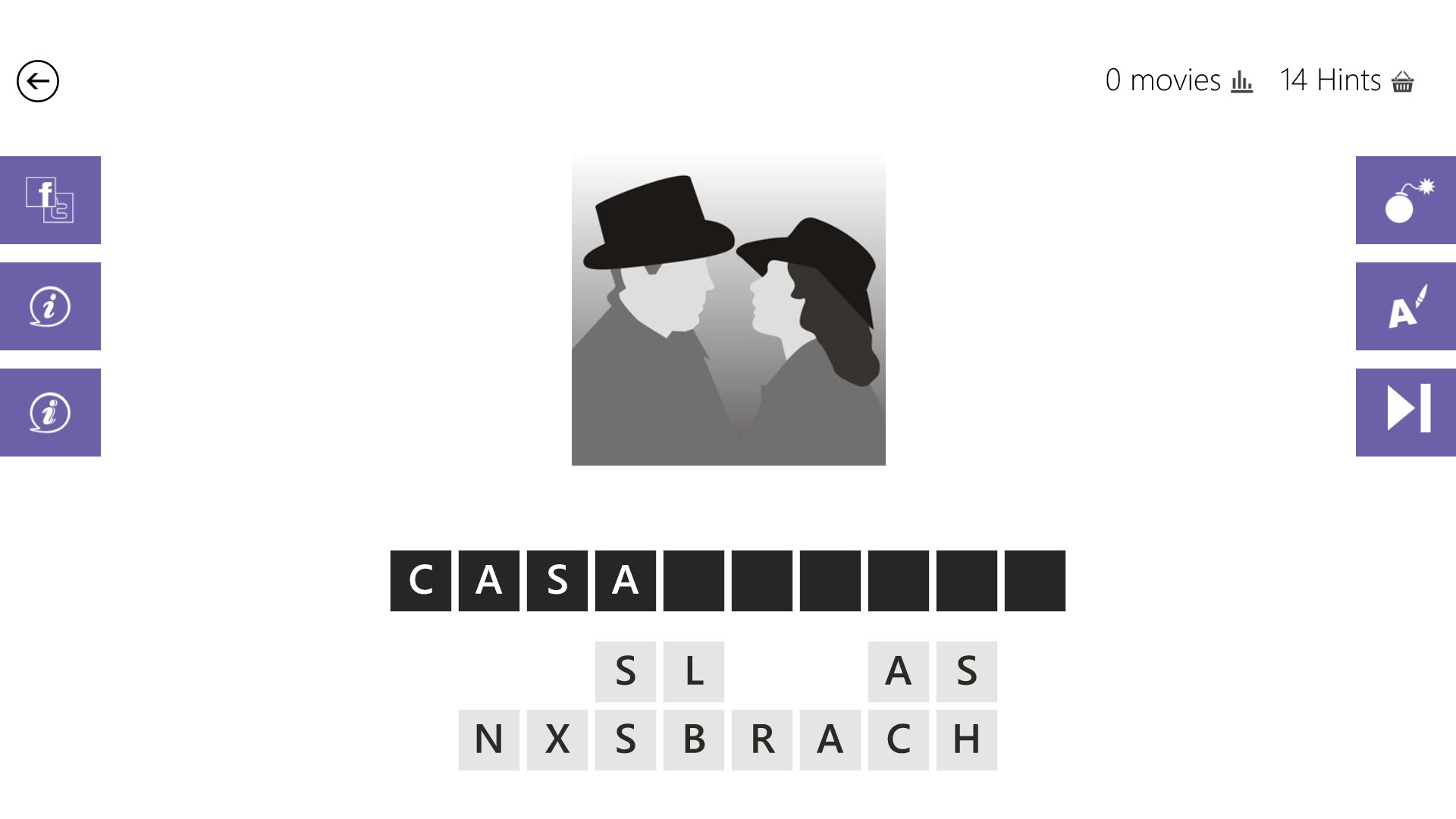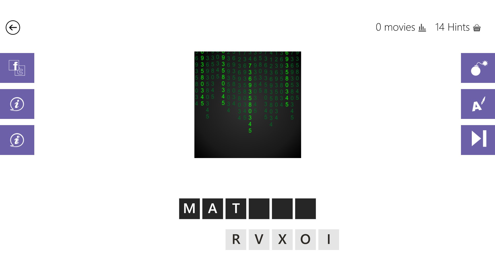 Playing is pretty simple: you see a film icon and you're shown a series of scrambled letters, out of which you have to guess the film title.