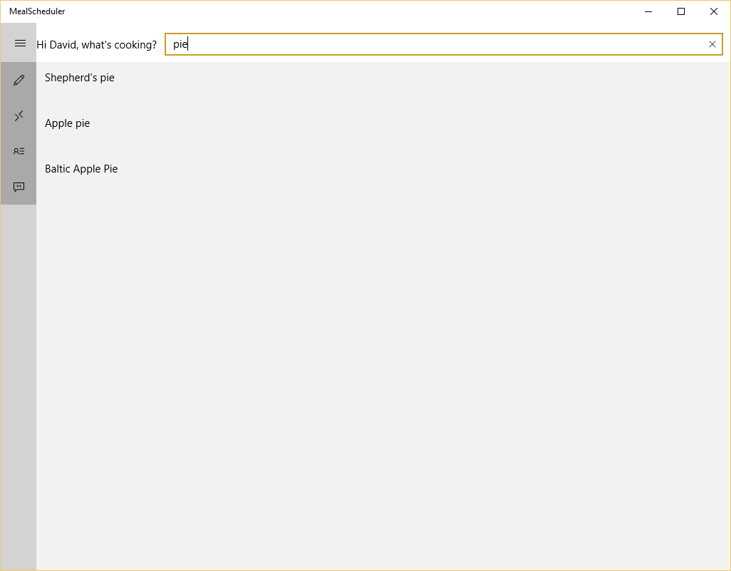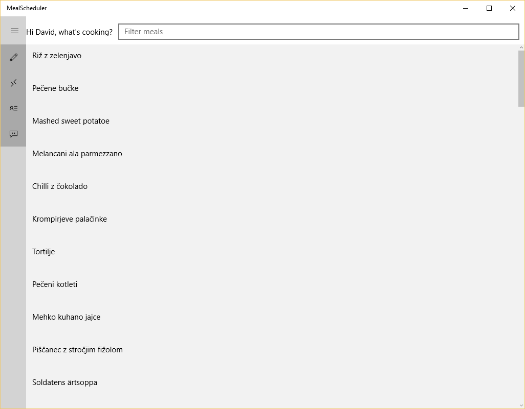 This, in combination with search by name and by tag, allows you to quickly settle on your next mission! Please note that MealScheduler really shines when you have entered many recipes.