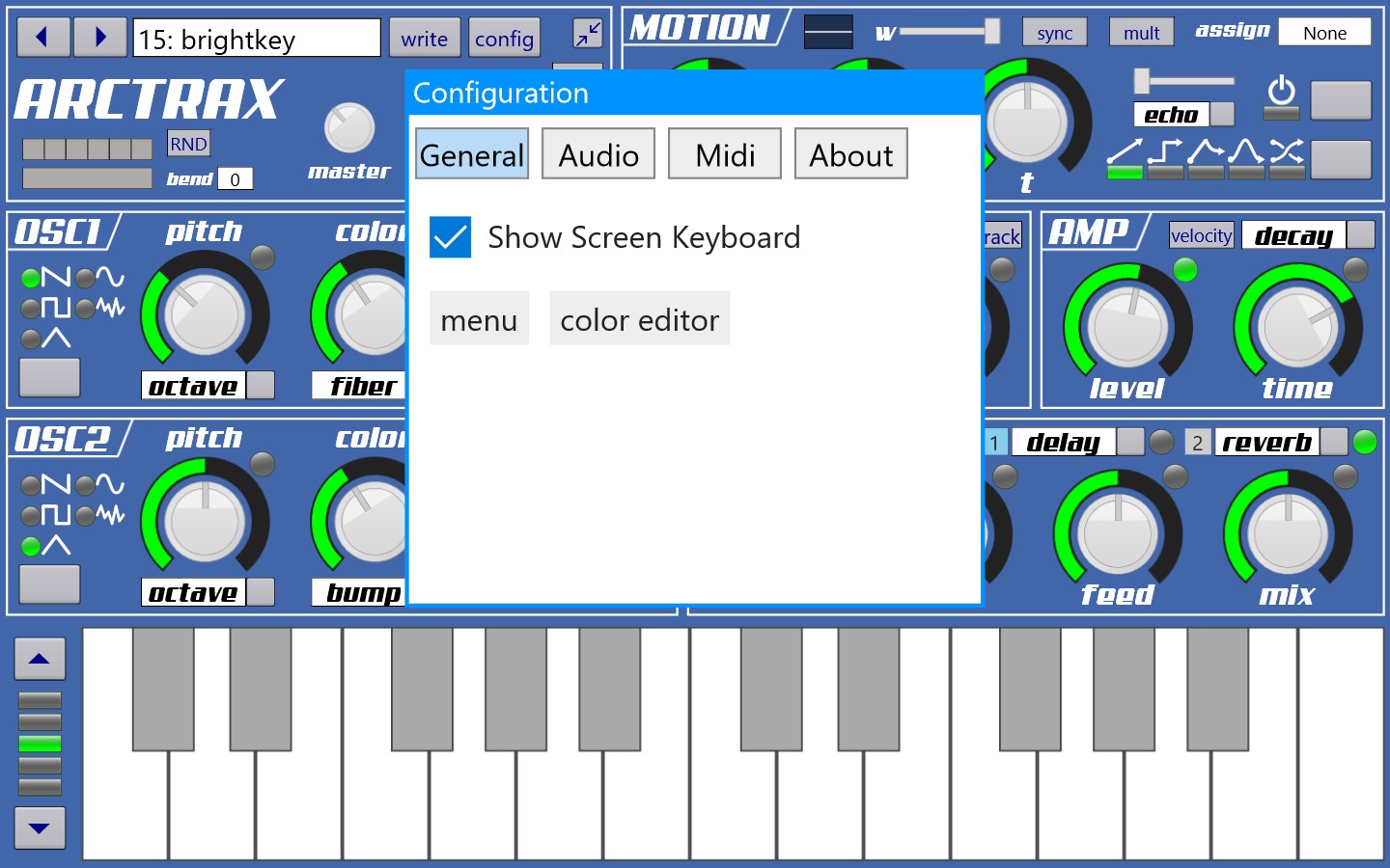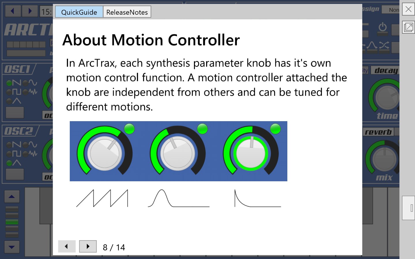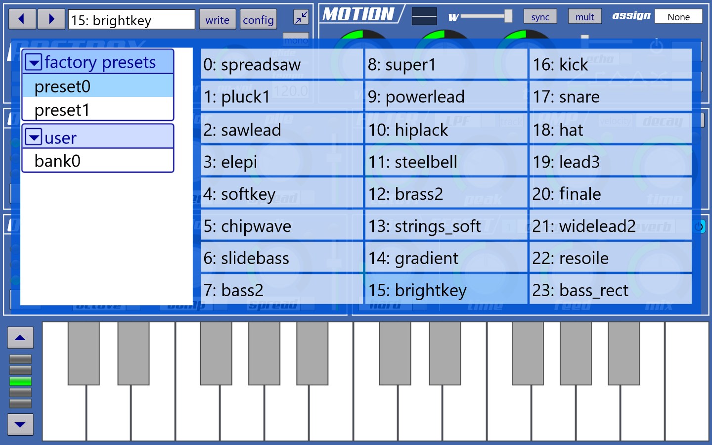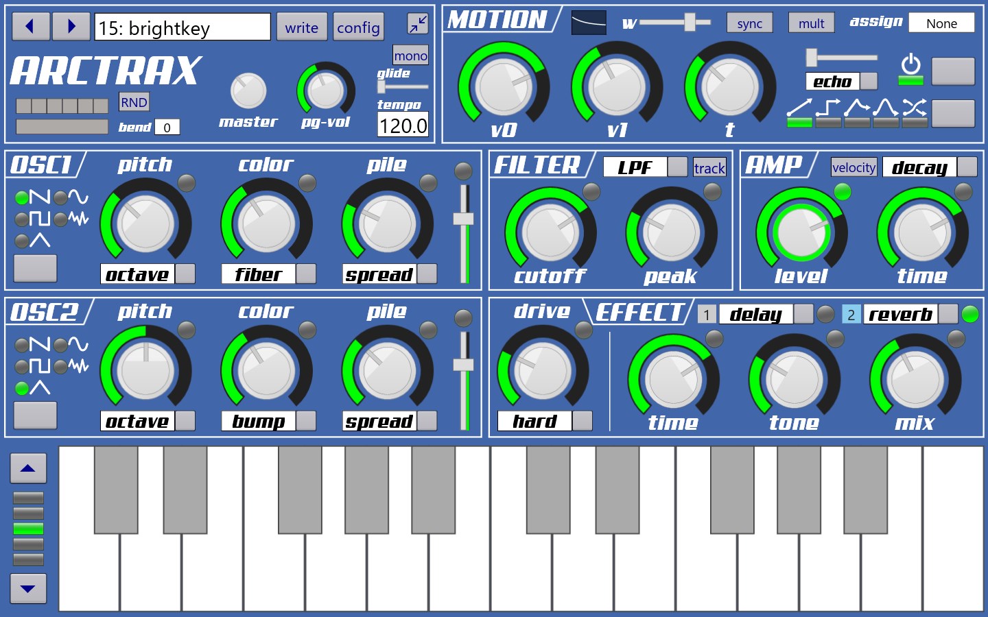 2Osc + Filter + Amp + EffectMotion Controller for each knobSupport MIDI input devices