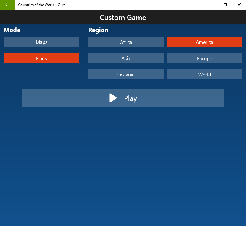 Choose which part of the world to play with, and the game mode: flags or cards.