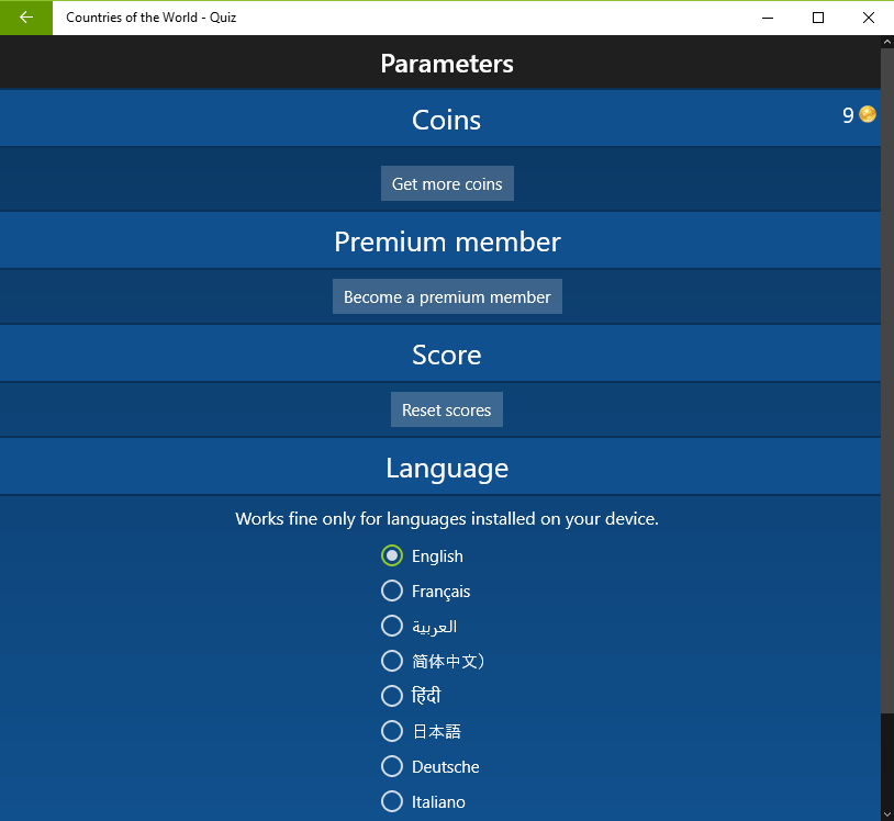 Inside the application, change it to learn the names of the countries in 11 different languages!