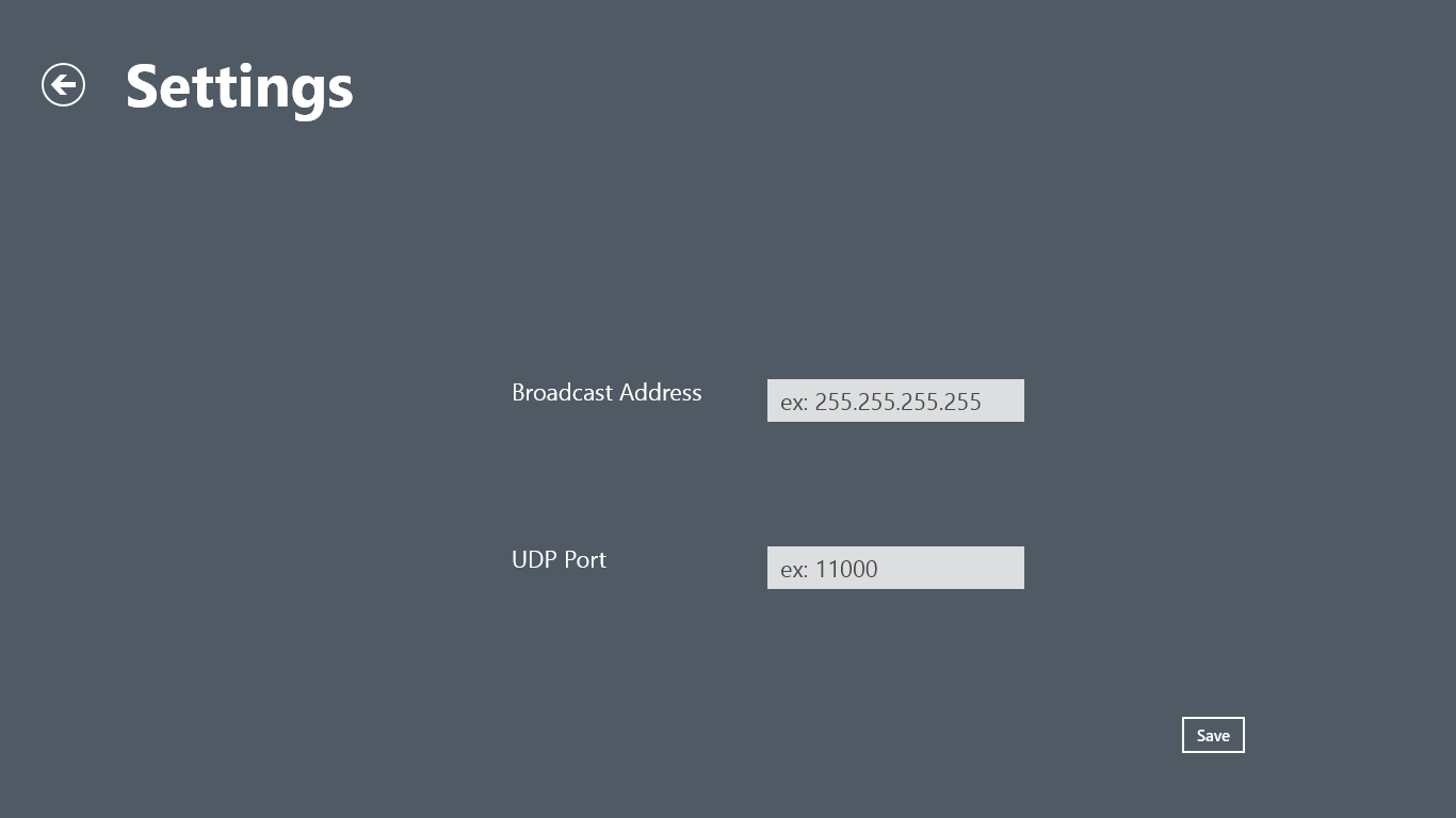 6. Before using Workgroup Tools configure the settings in Workgroup Tools Server. The typical setting for the UDP Port is 11000 and the typical setting for the broadcast address is 255.255.255.255.