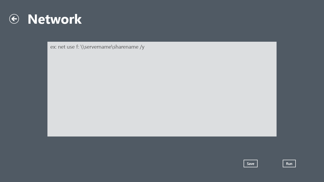 10. Now from Workgroup Tools open the Network Page. From here you can create a login script that will run on the workstation on login. After entering in the commands for your login script select “Save” this will deploy the login script to the workstations. Then select “Run” this will run the login script on the workstations. (The default file it will run is named login.cmd and will reside on the workstations. Make sure your antivirus or malware programs do not block this file.)