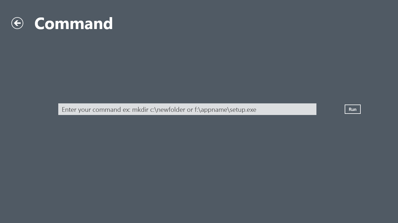 11. Next open the Command Page. From here you can enter most commands that you would typically use from a command line. You can specify a client setup program, or run a dos command such as mkdir. After typing your command select “Run"