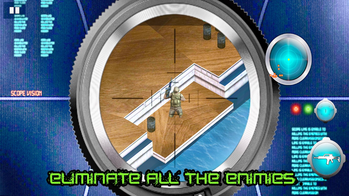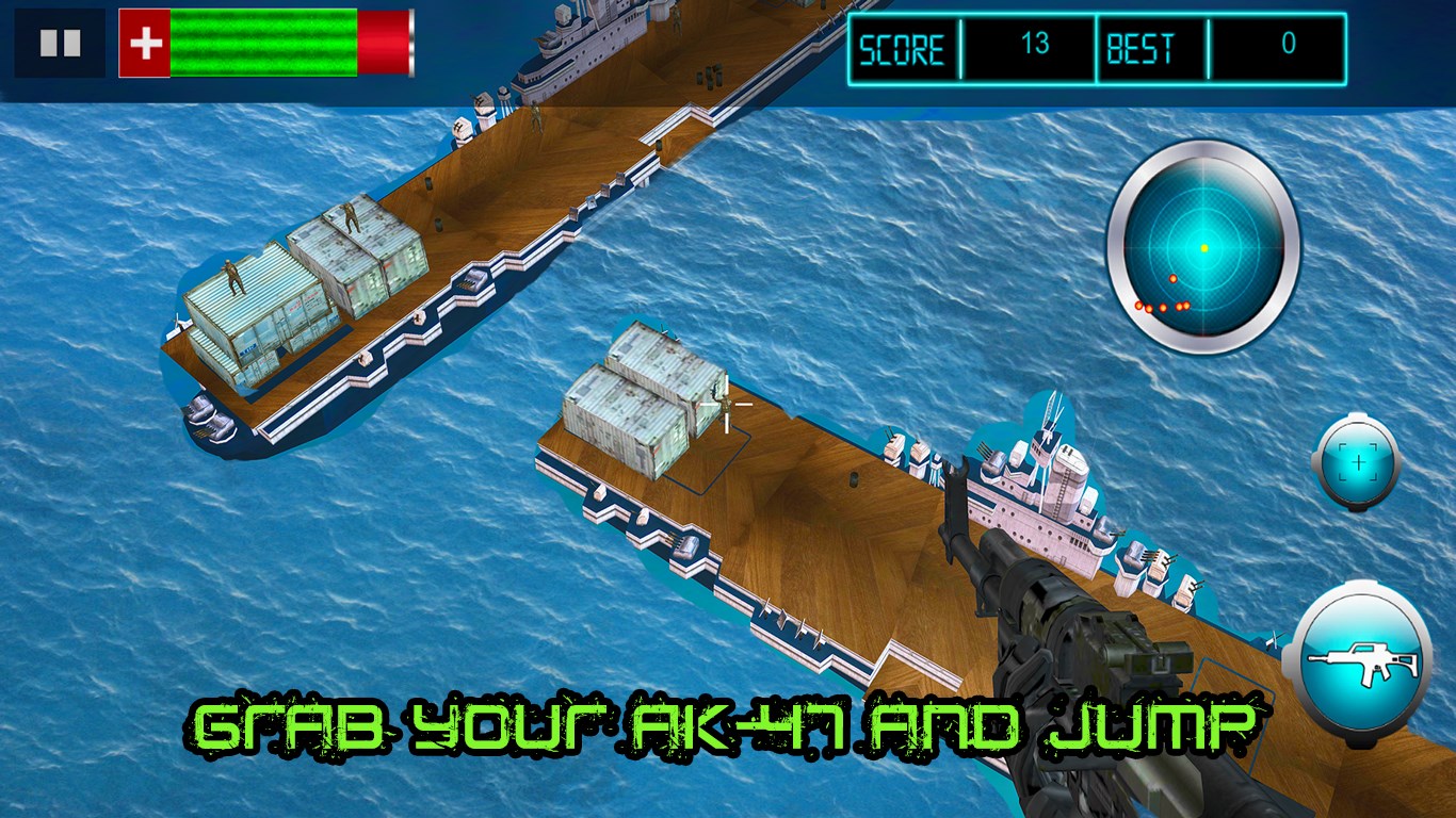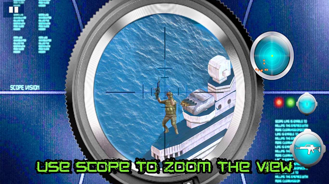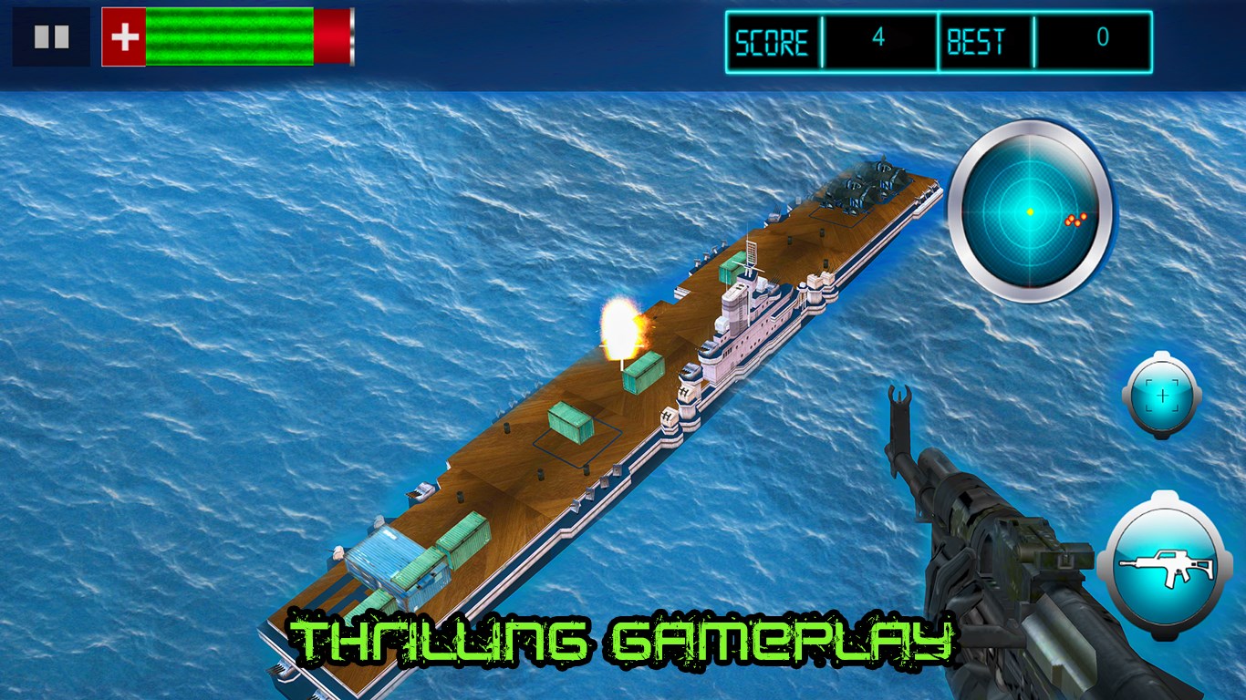The difficulty level in Navy Gunship Battlefield increases in higher levels. The number of enemies on the ships are increased and the time is reduced. The battle remains the same that you must survive. You must take accurate shots to win the battle. Your player have got the killer instinct. Start taking the perfect shots with your AK47 rifle gun.